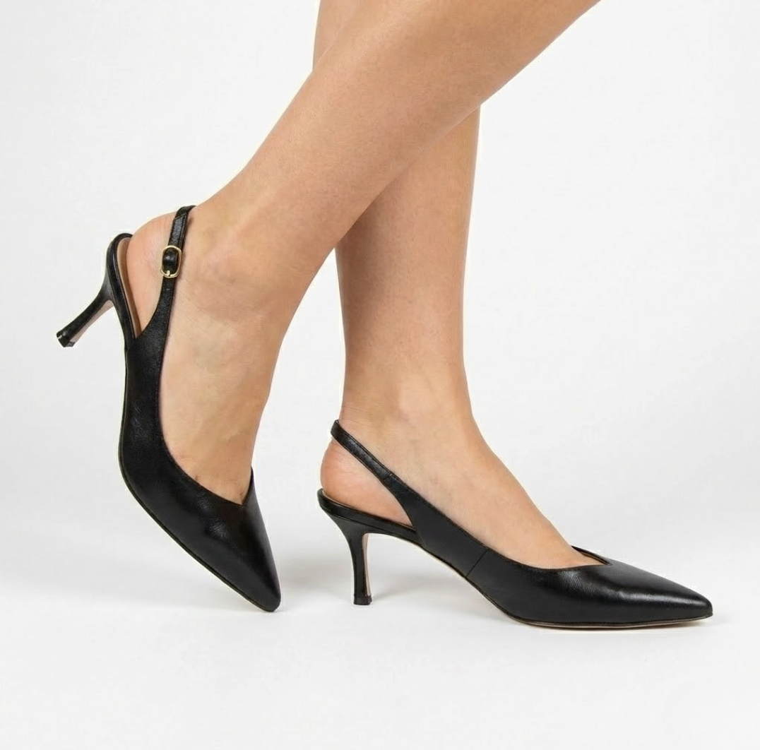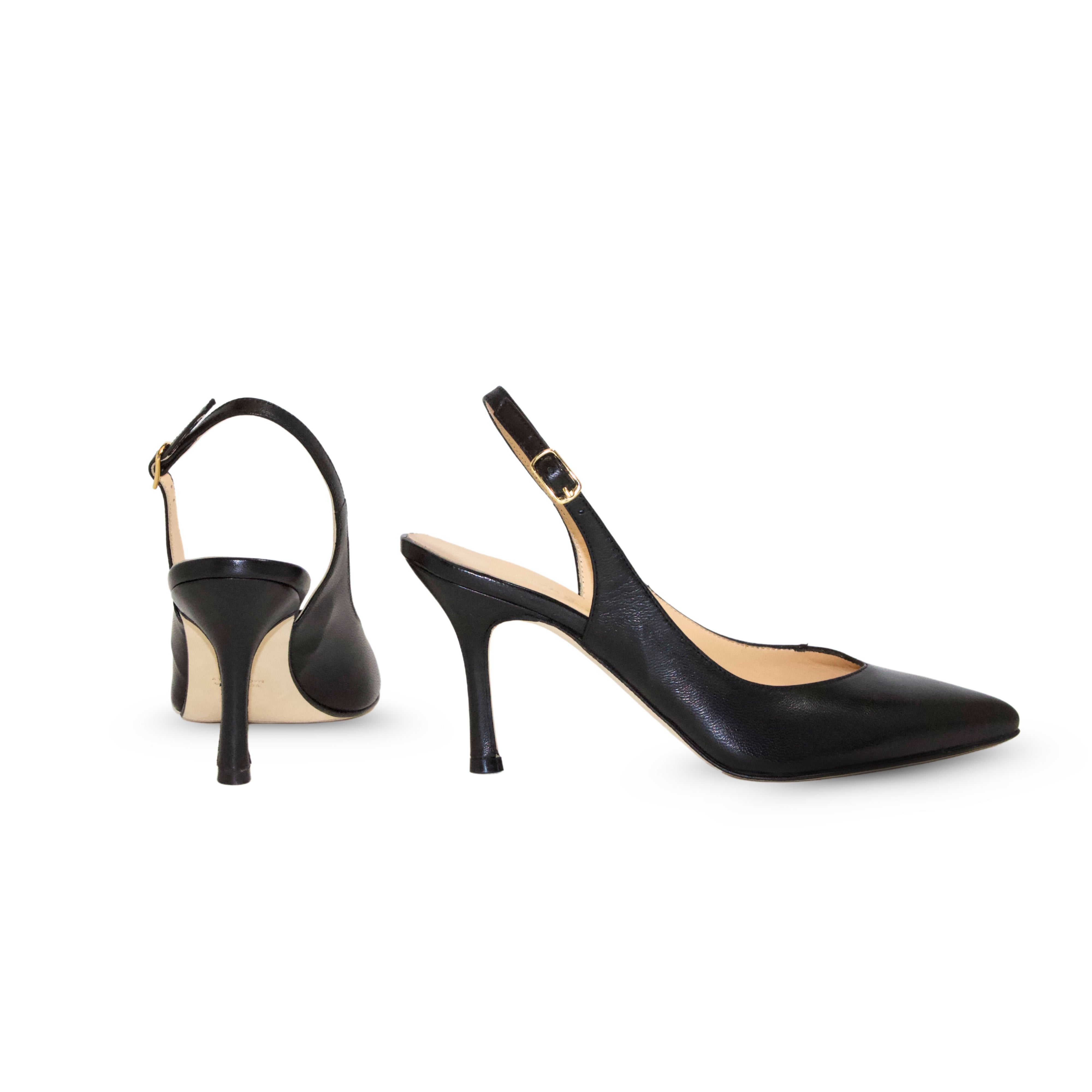 DÉCOLLETÉ SLINGBACK IN PELLE NERA CON PUNTA SFILATA E TACCO 9CM
