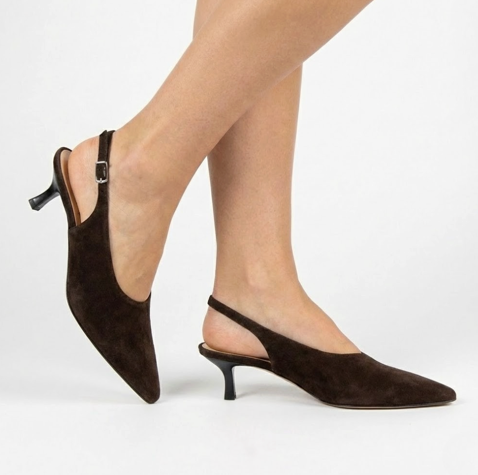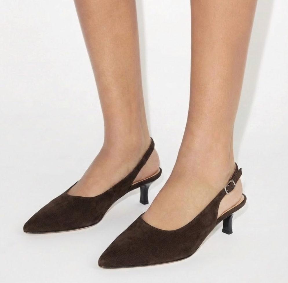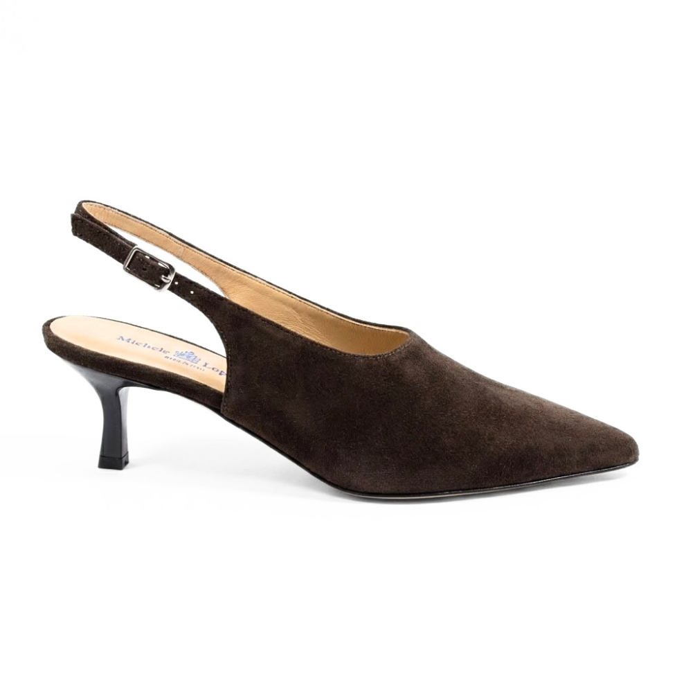 DÉCOLLETÉ SLINGBACK IN CAMOSCIO TESTA DI MORO CON PUNTA SFILATA E TACCO MEDIO