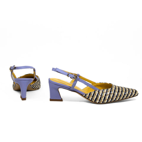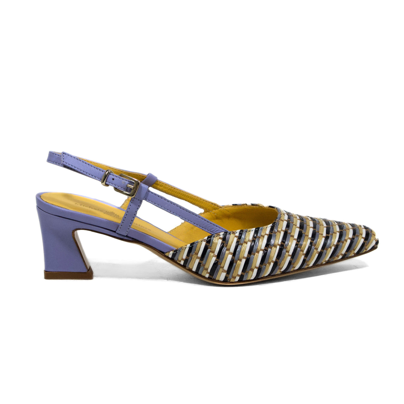 Il design è un connubio perfetto di raffinatezza e colore: l'iconico cinturino e il tacco geometrico basso offrono stabilità e un tocco di tendenza.