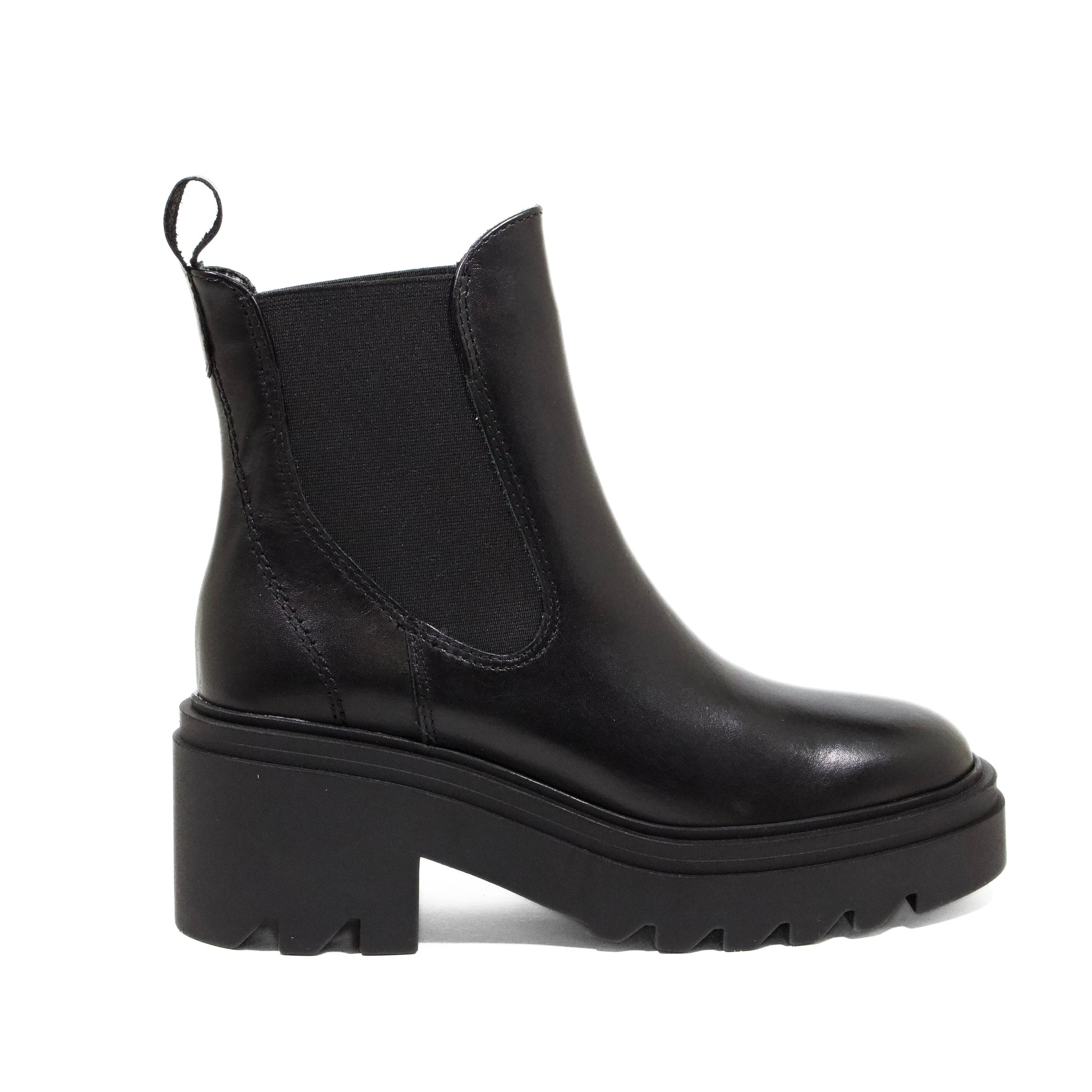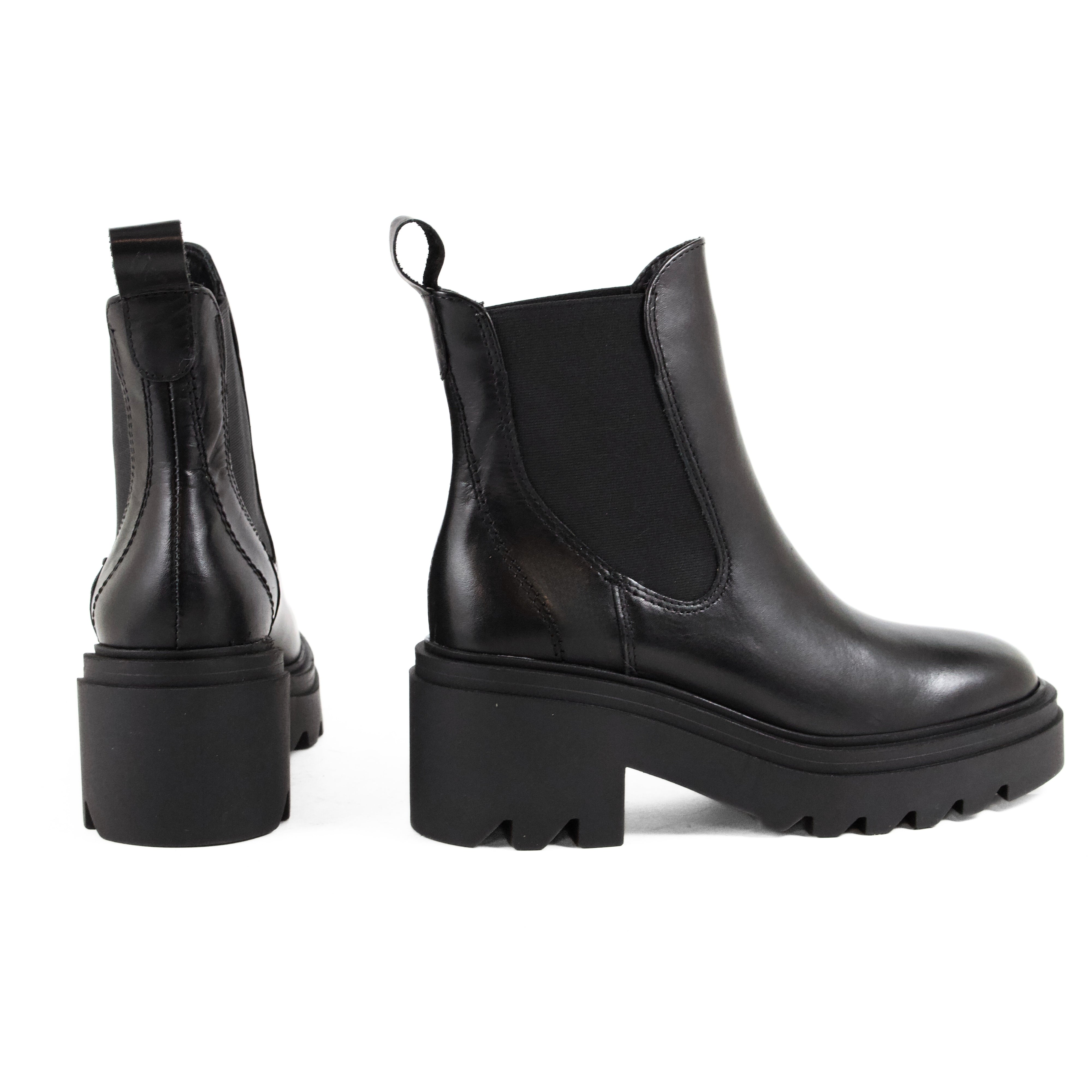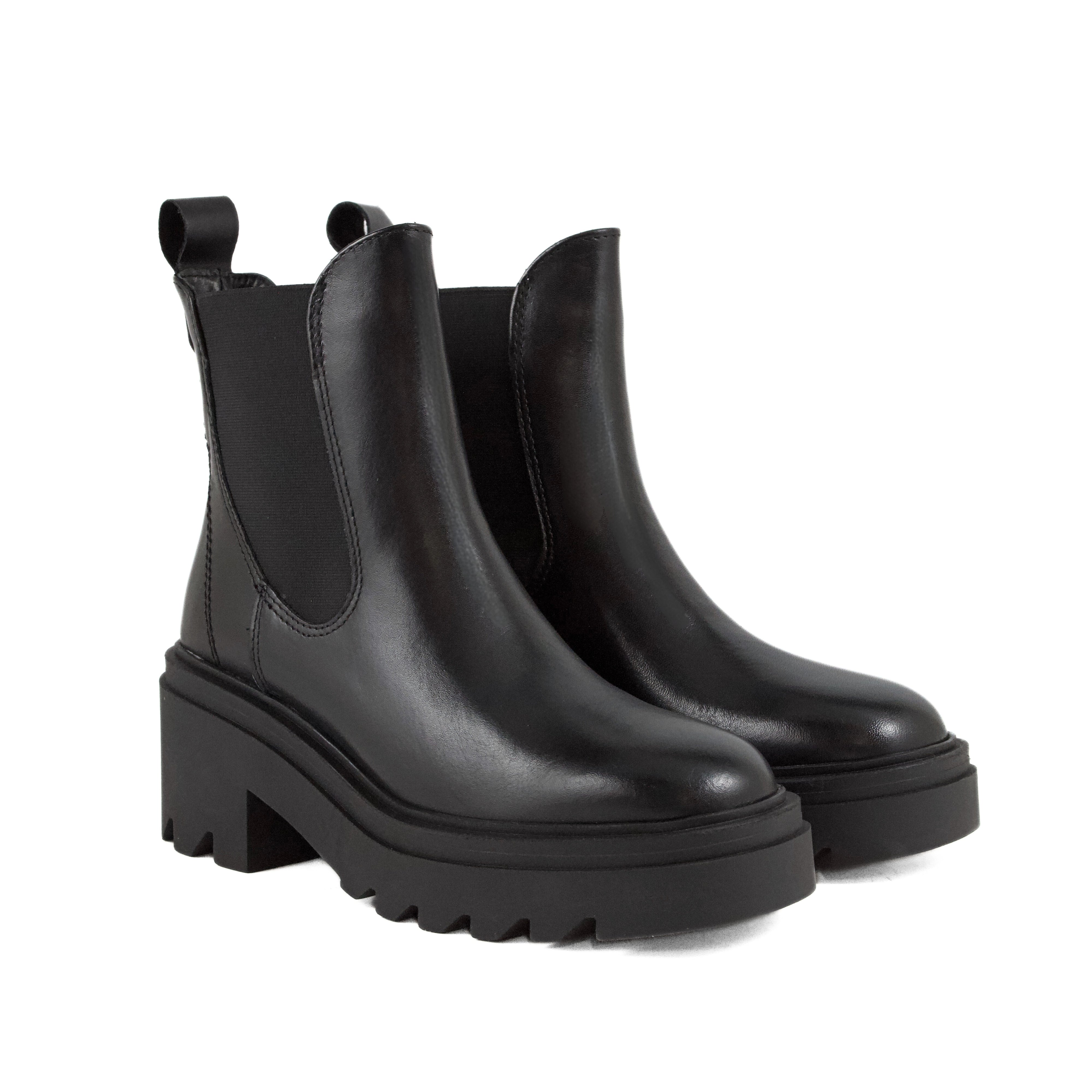 STIVALETTO CHELSEA IN PELLE NERA CON SUOLA CARRARMATO E TACCO LARGO