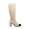 STIVALE ALTO A PUNTA ARROTONDATA IN CAMOSCIO BEIGE CON PUNTA IN VERNICE NERA TACCO A BLOCCO MEDIO
