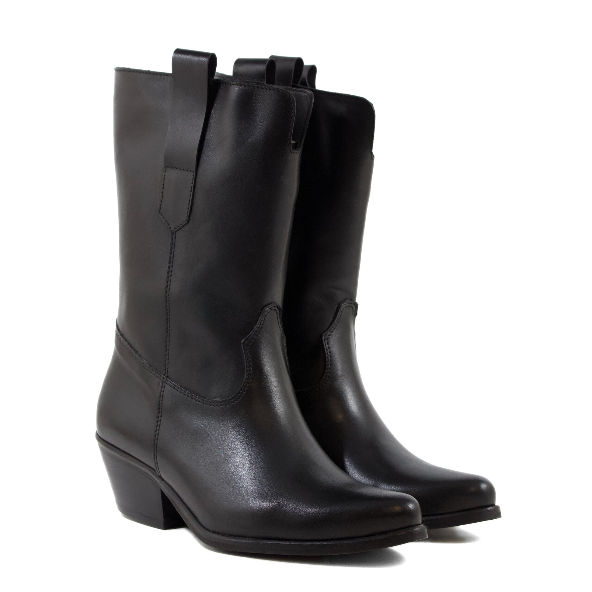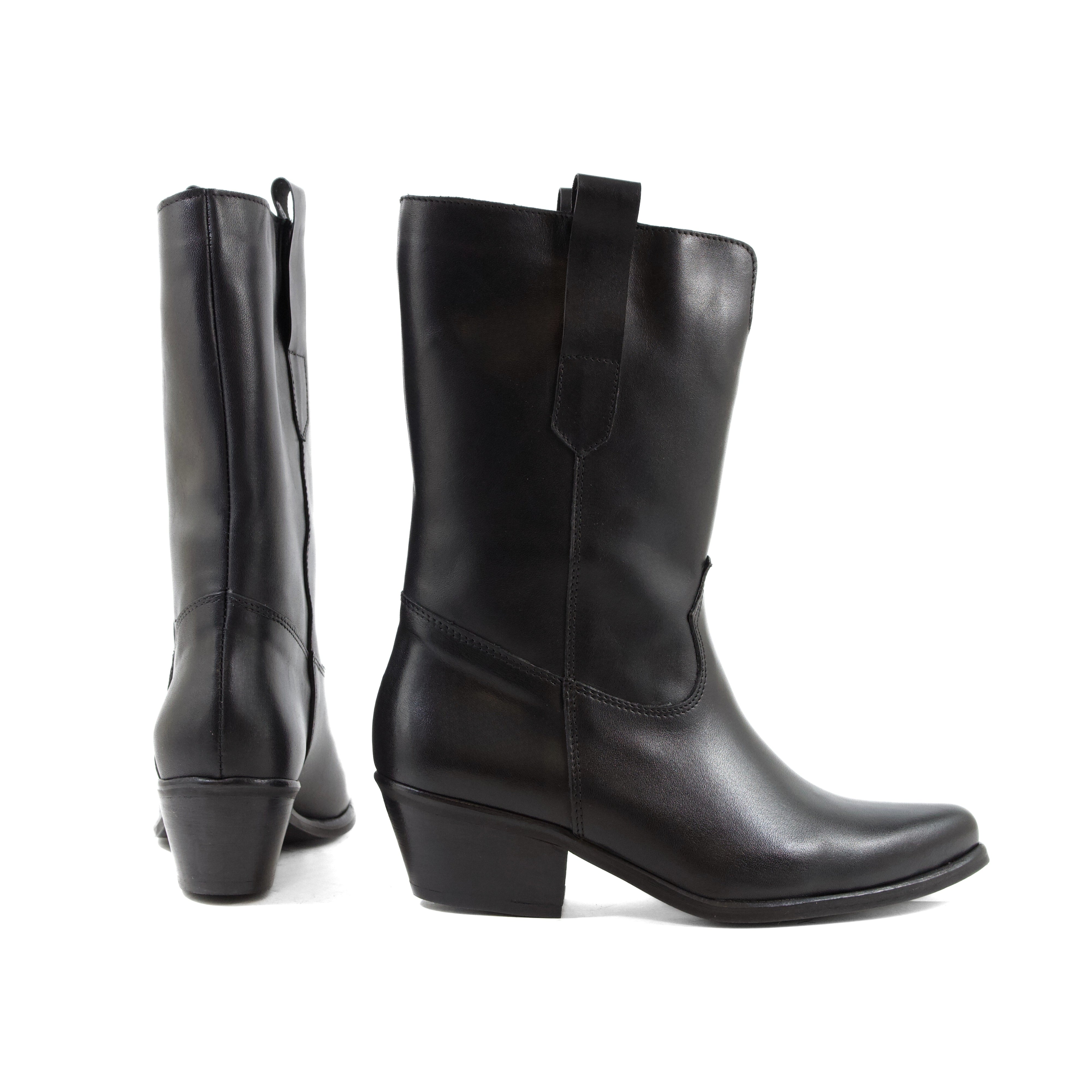 CAMPEROS IN PELLE DI VITELLO NERA CON TACCO CUBANO