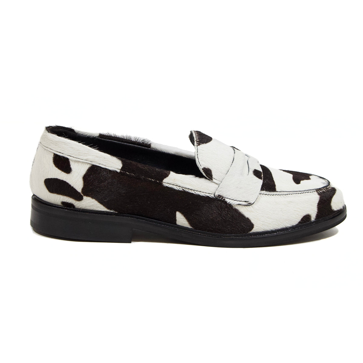 Aggiungi un tocco di stile contemporaneo al tuo look con questi mocassini da donna in cavallino bianco e moro, caratterizzati da una raffinata fantasia animalier.