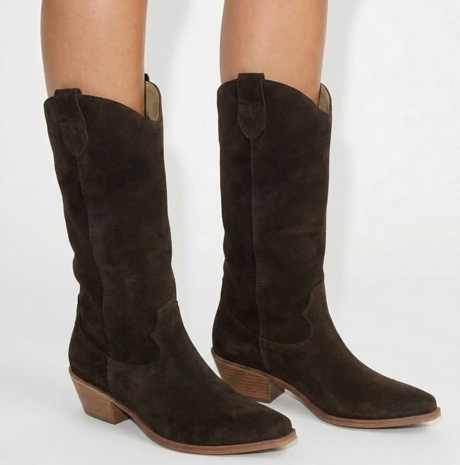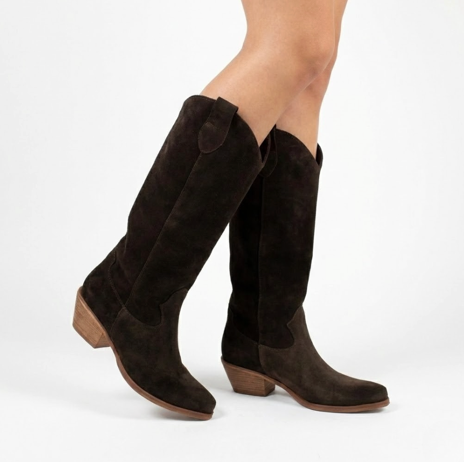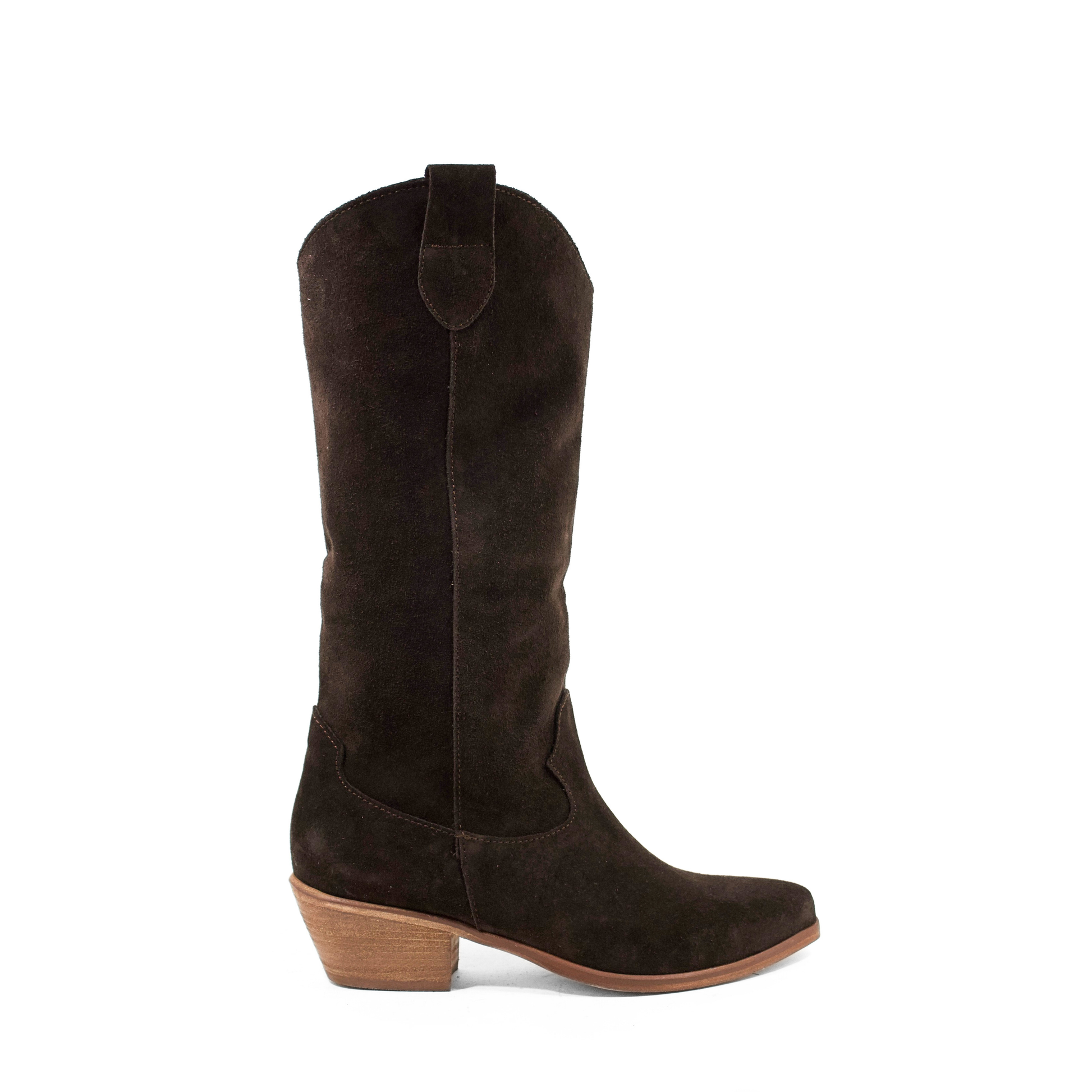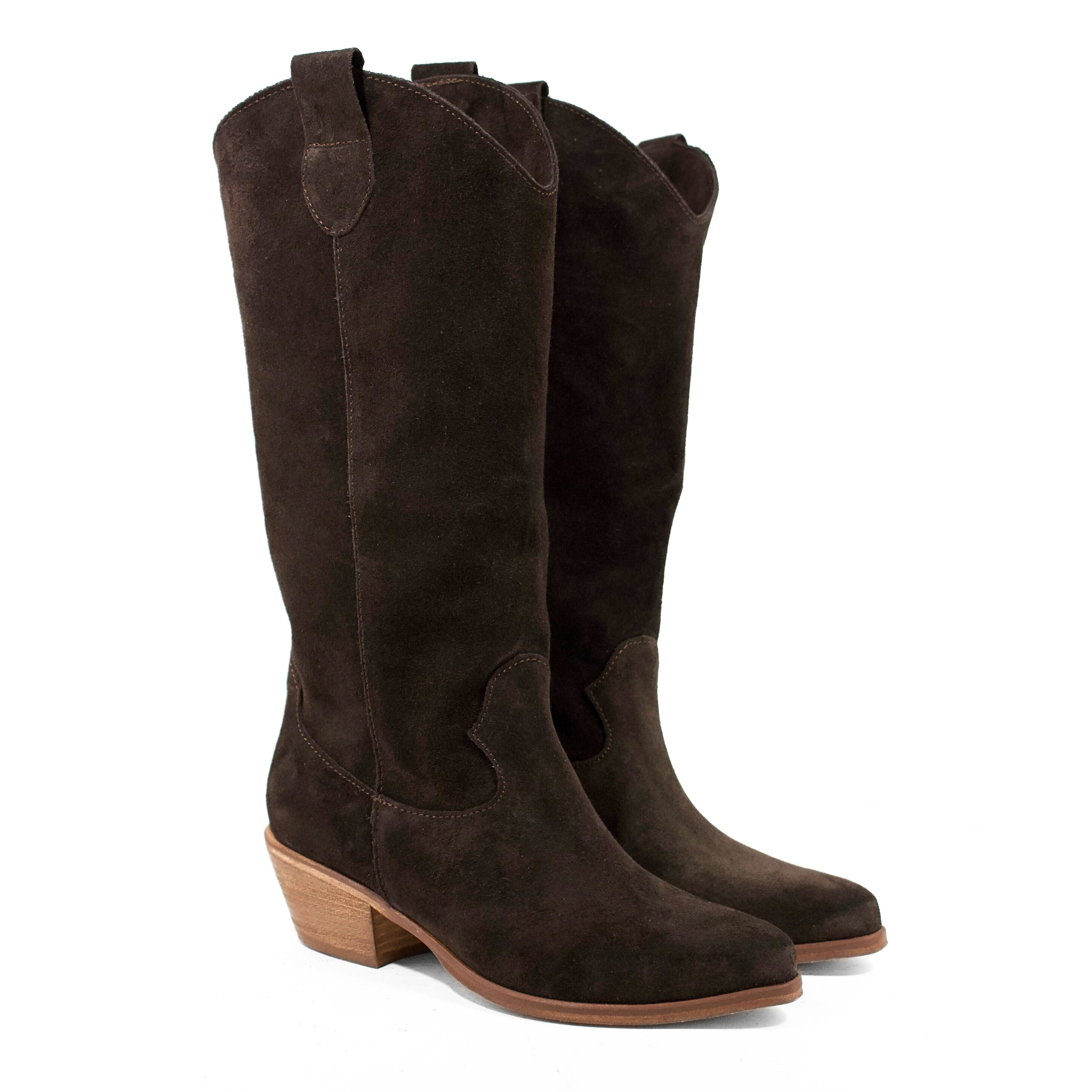 STIVALE CAMPEROS IN CAMOSCIO TESTA DI MORO CON PUNTA SFILATA E TACCO CUBANO