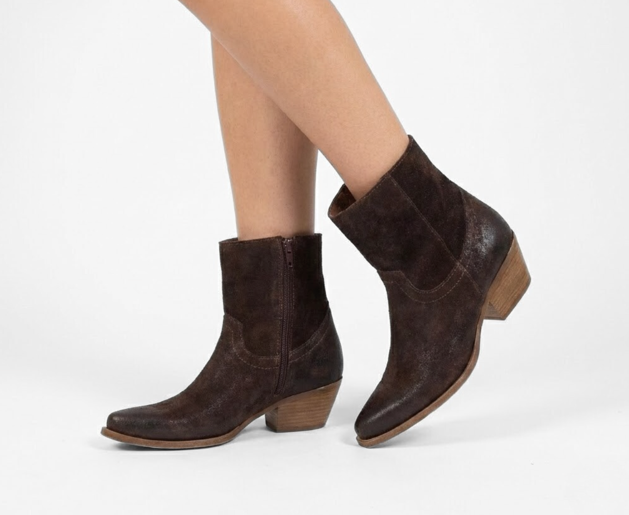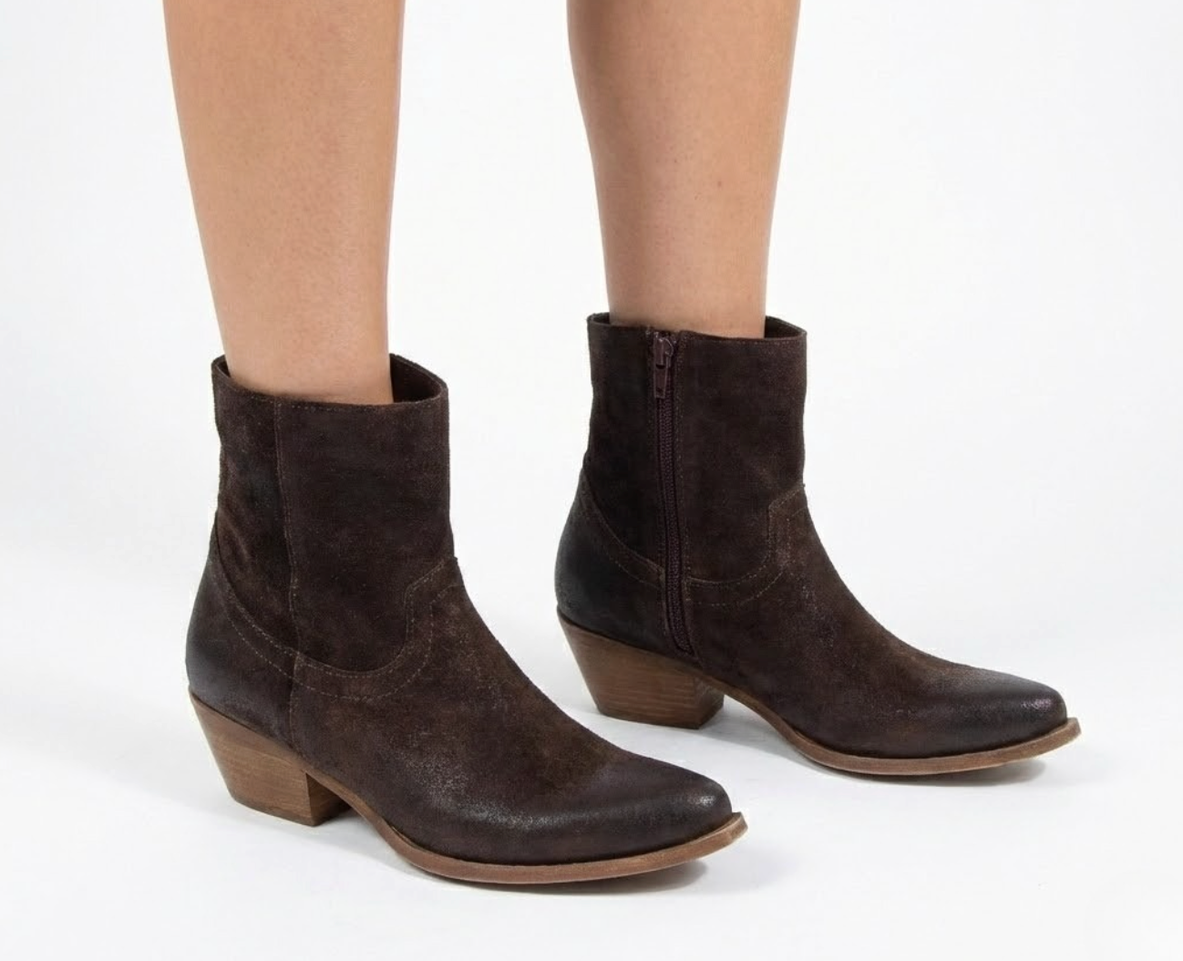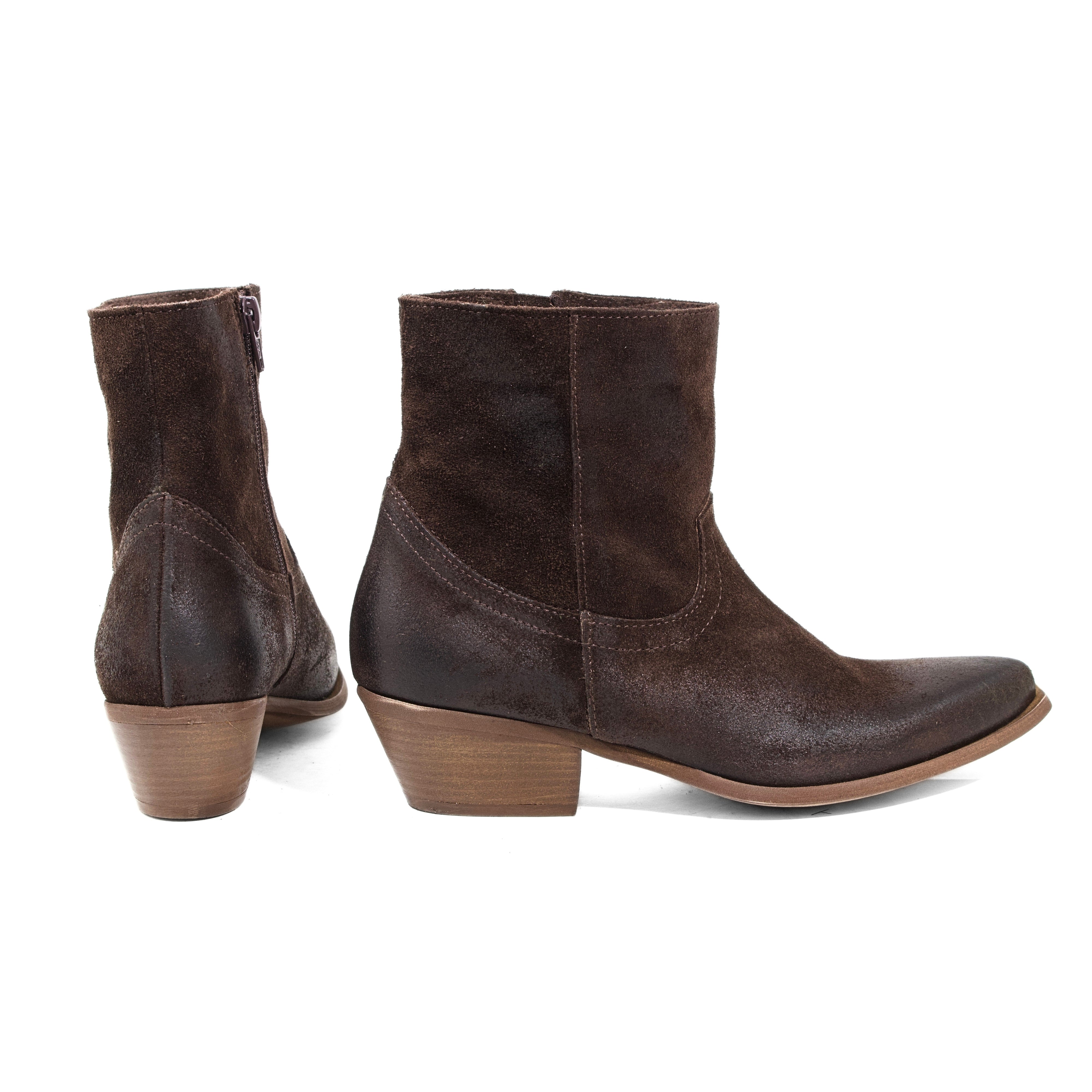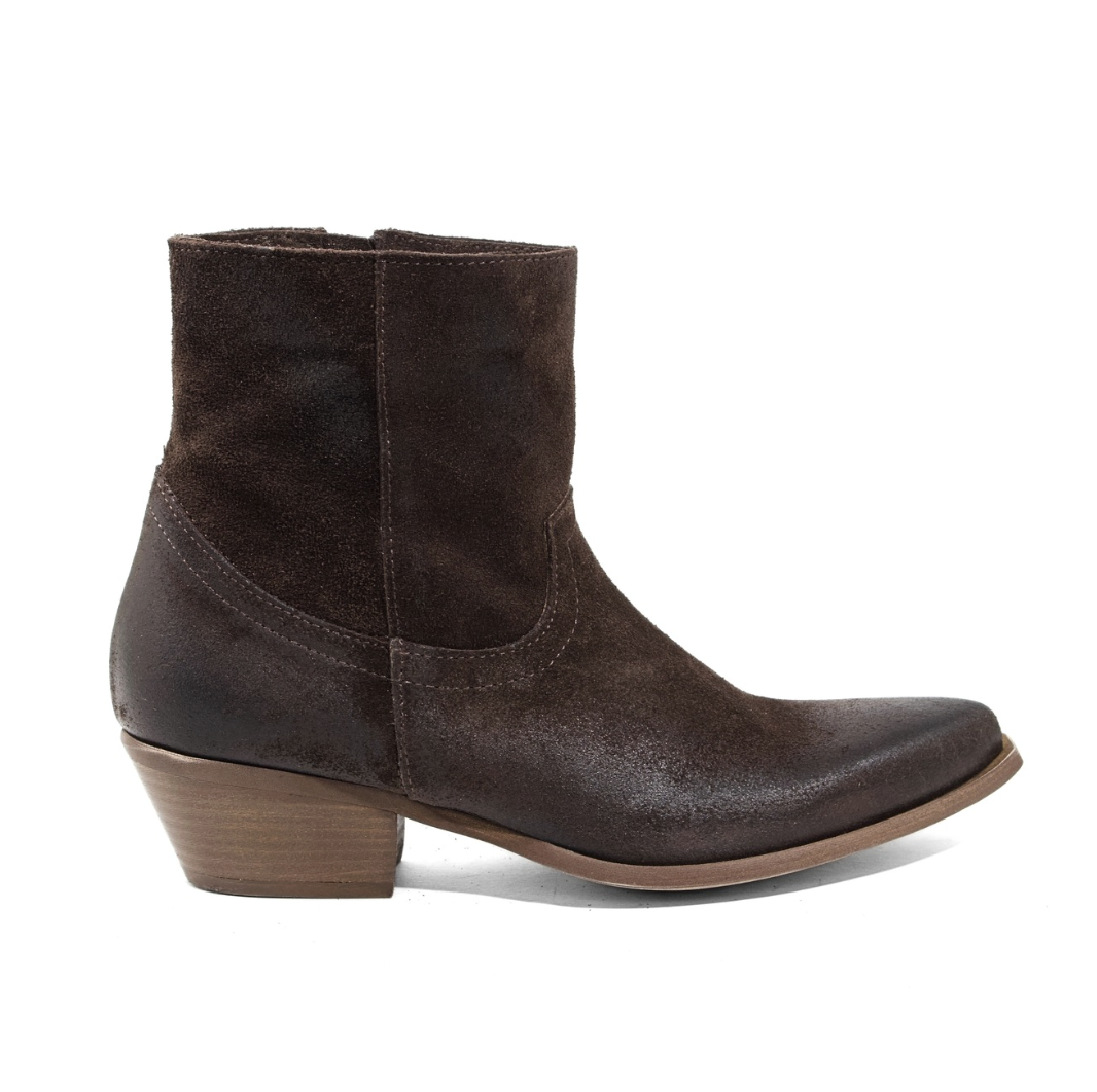 STIVALETTO CAMPEROS IN CAMOSCIO TESTA DI MORO CON RICAMI WESTERN E TACCO CUBANO