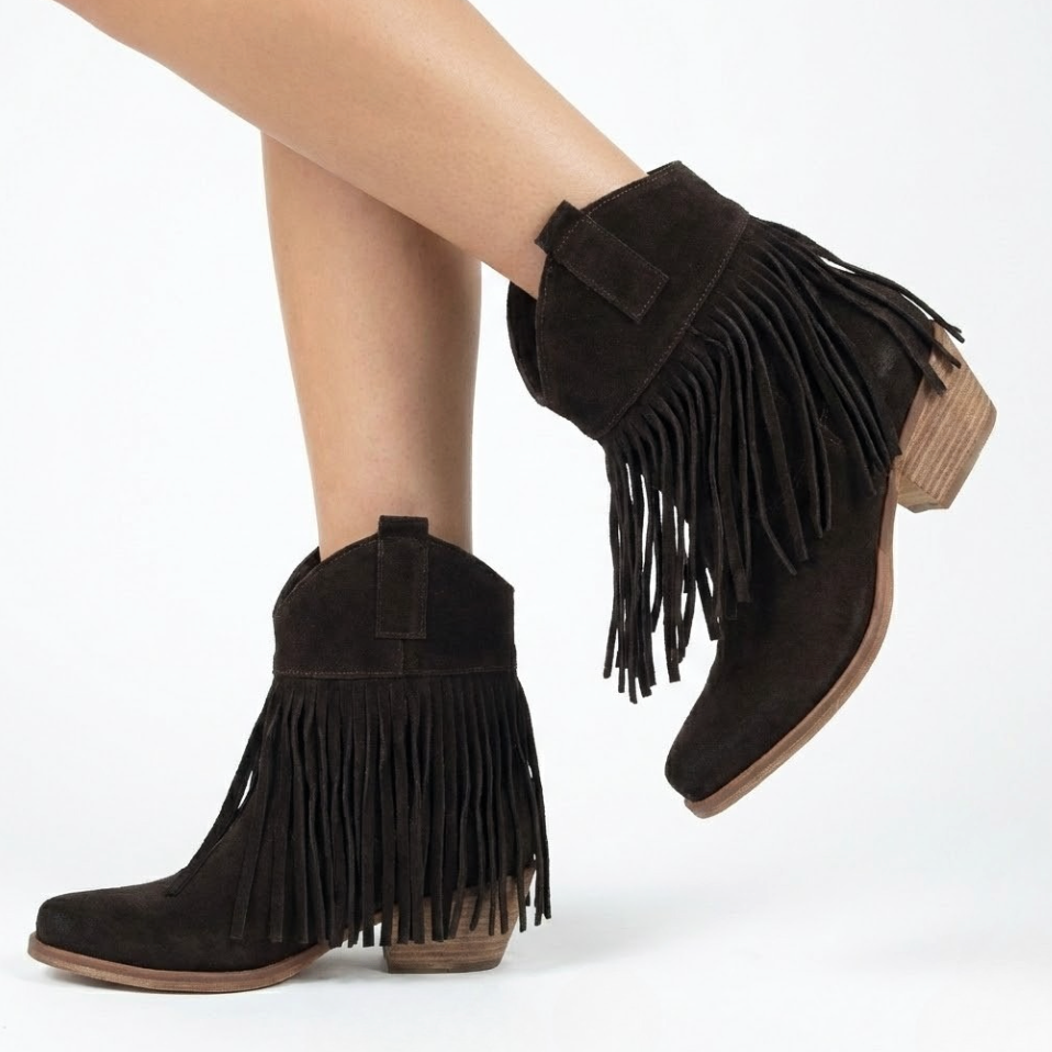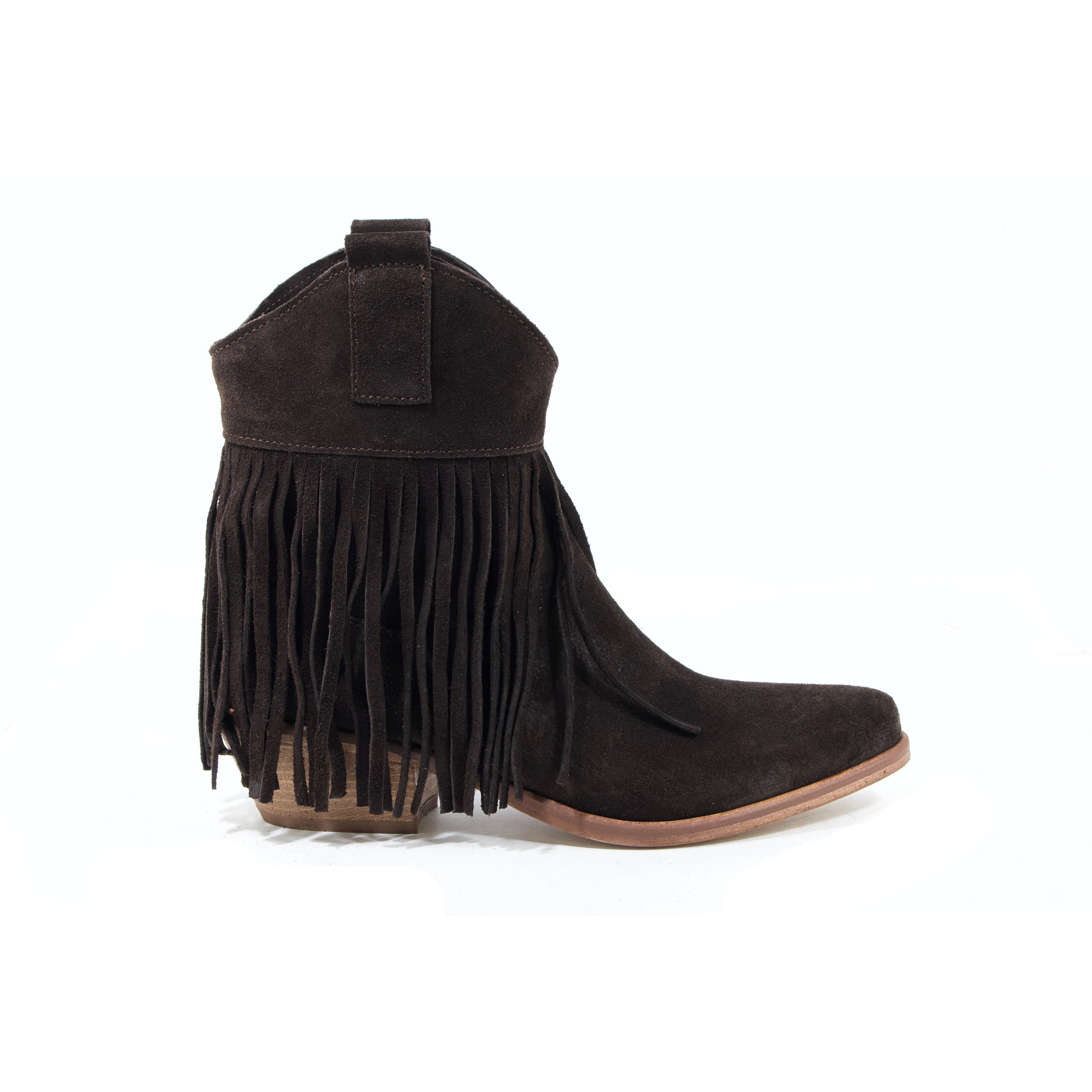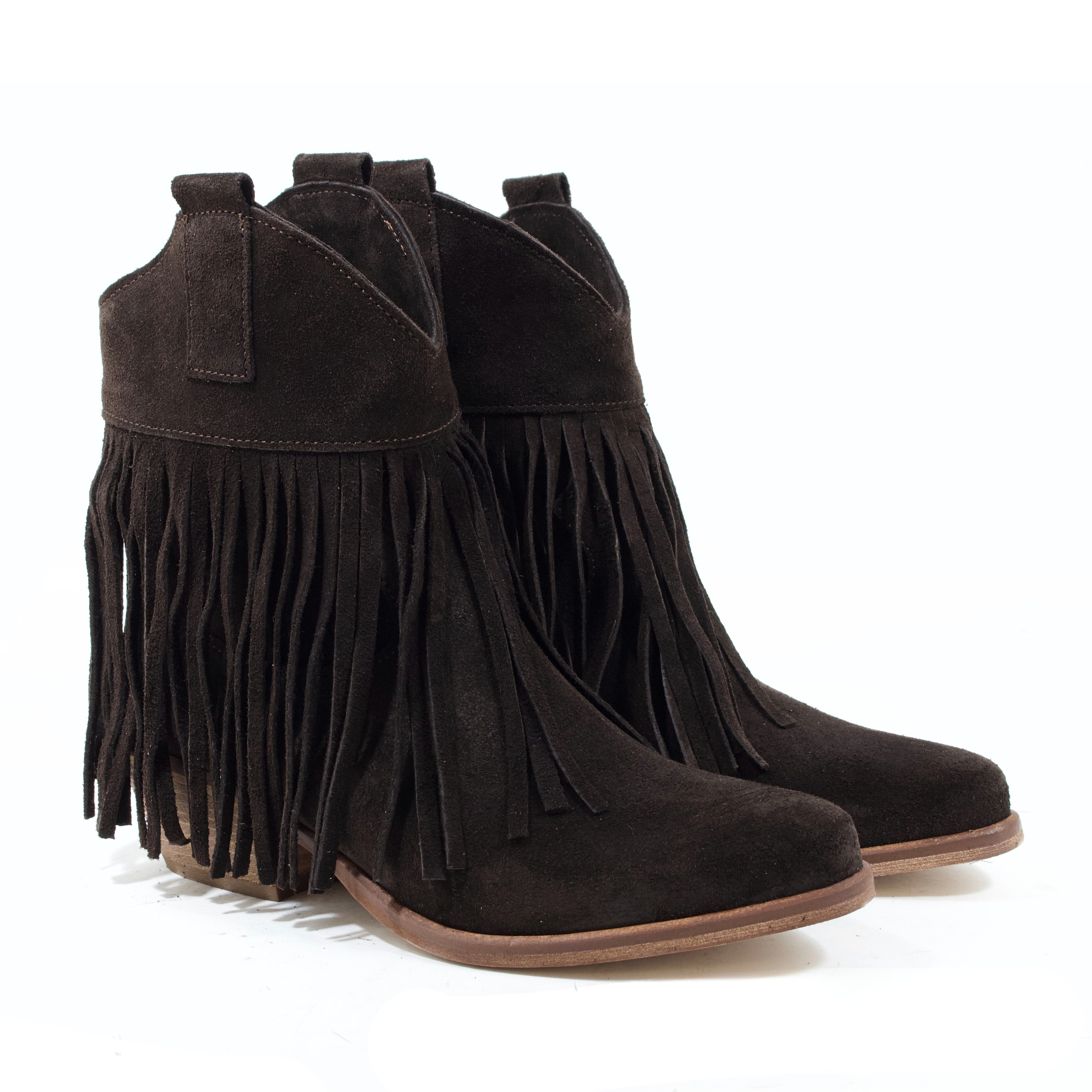STIVALETTO CAMPEROS IN CAMOSCIO TESTA DI MORO CON FRANGE E TACCO CUBANO