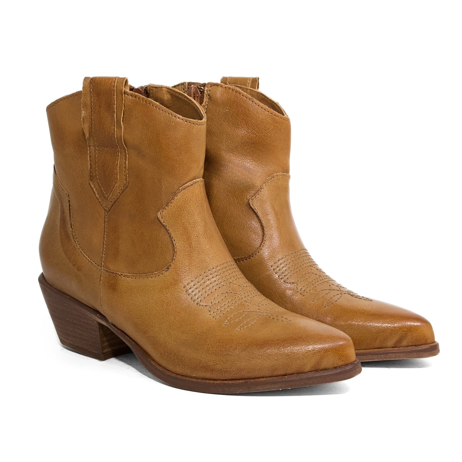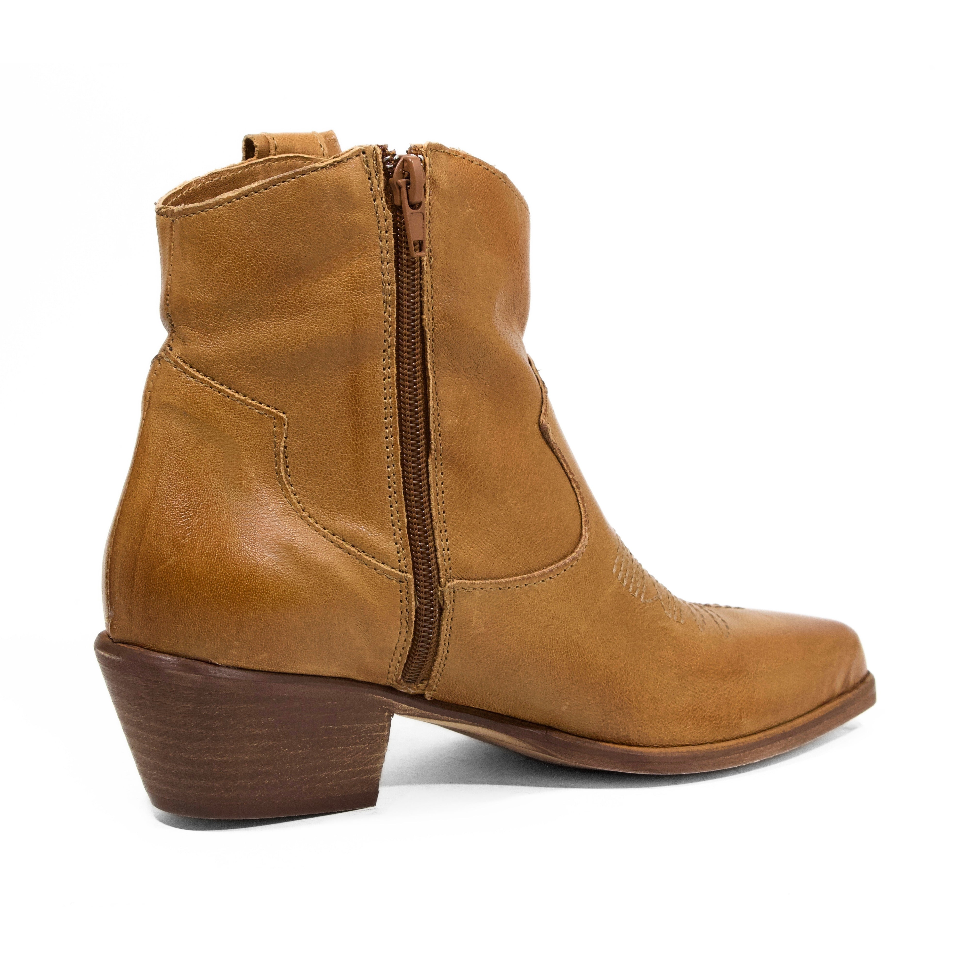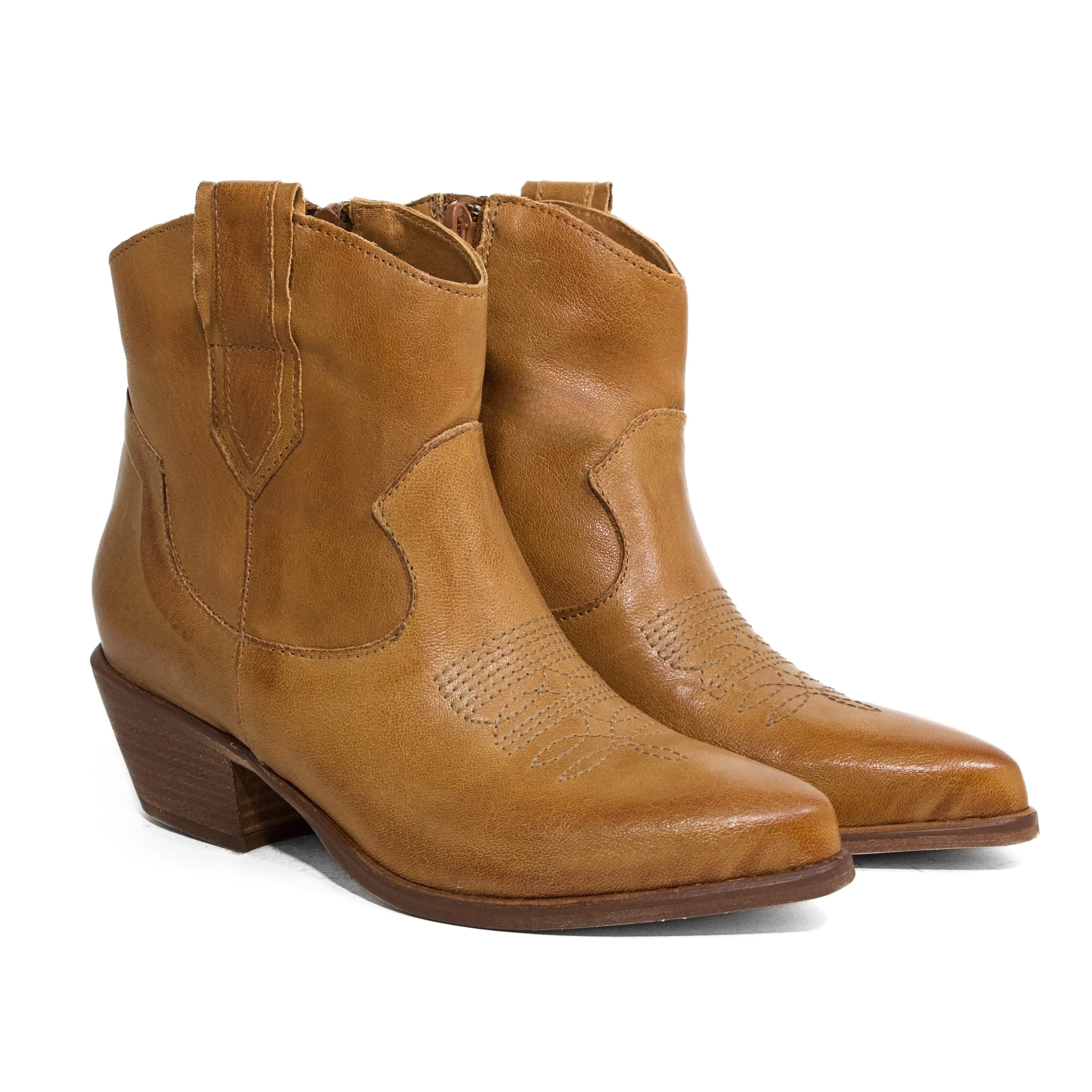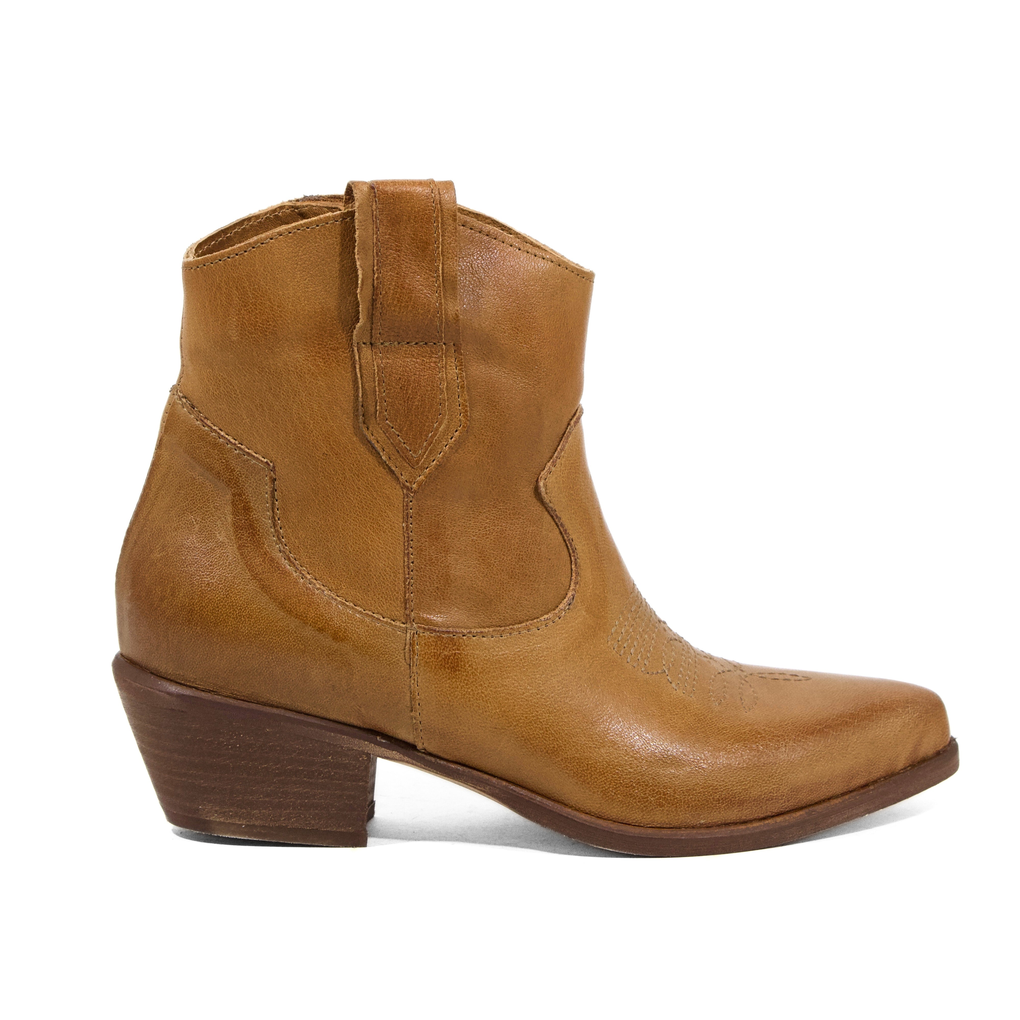 STIVALETTO CAMPEROS IN PELLE LAVATA CUOIO CON RICAMI WESTERN E TACCO CUBANO