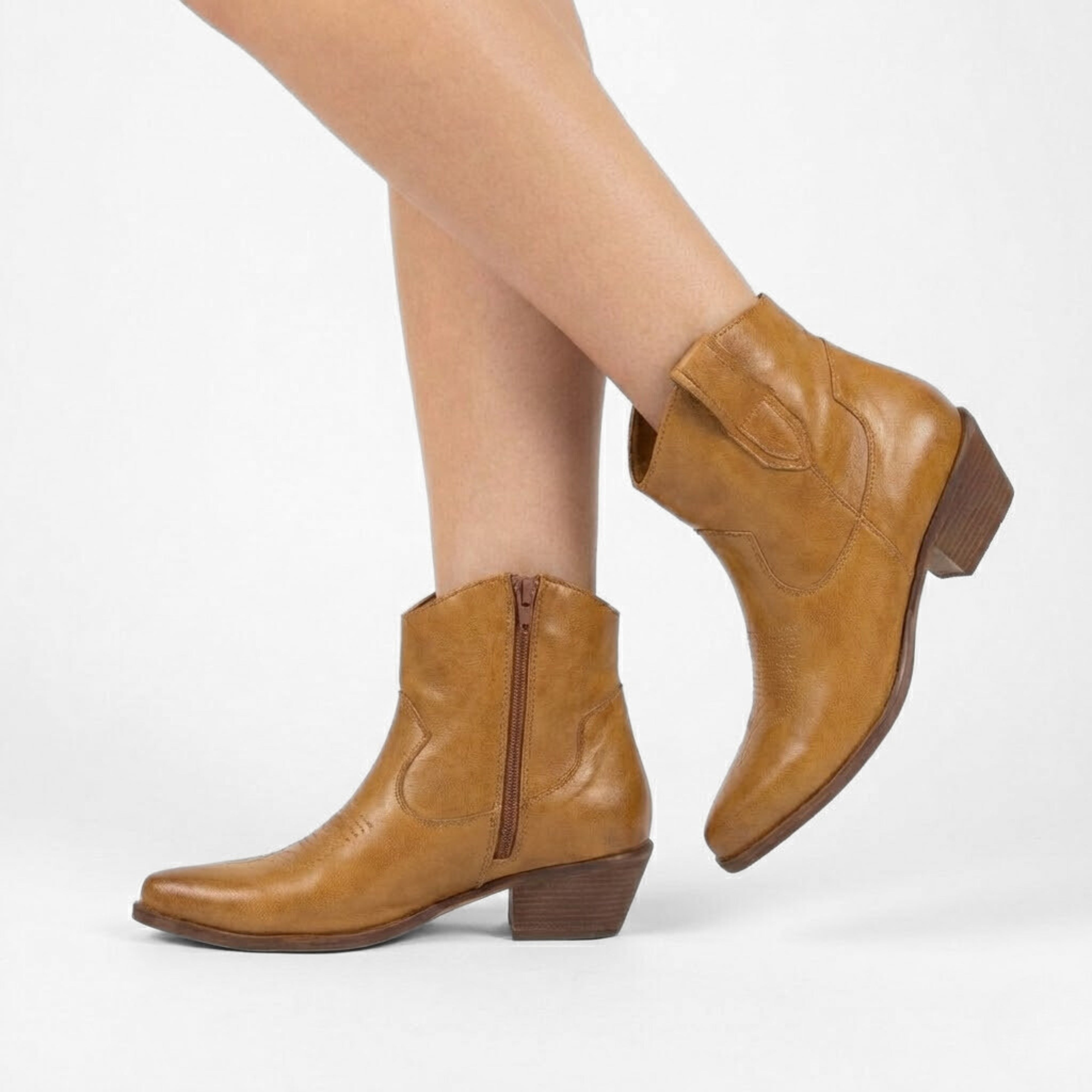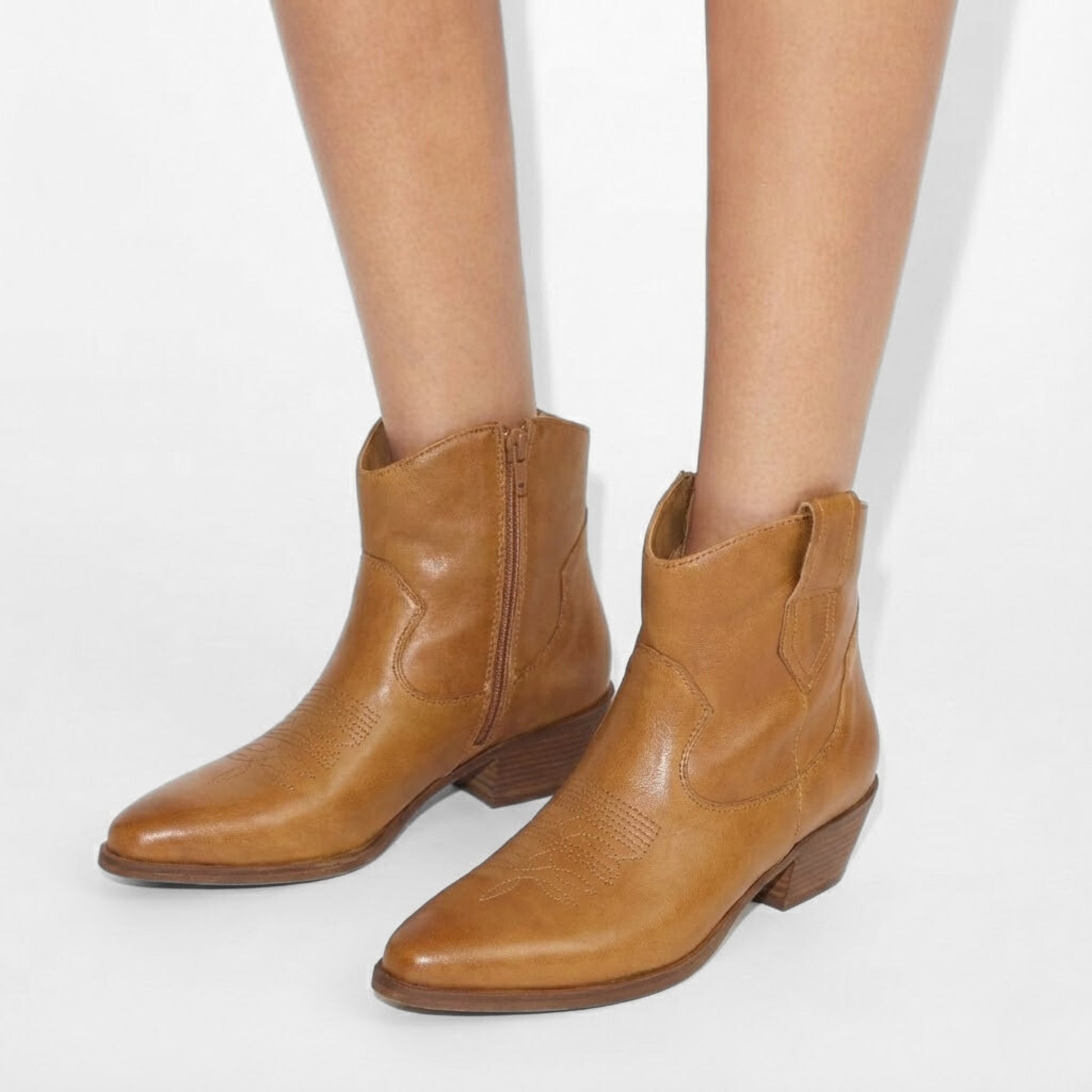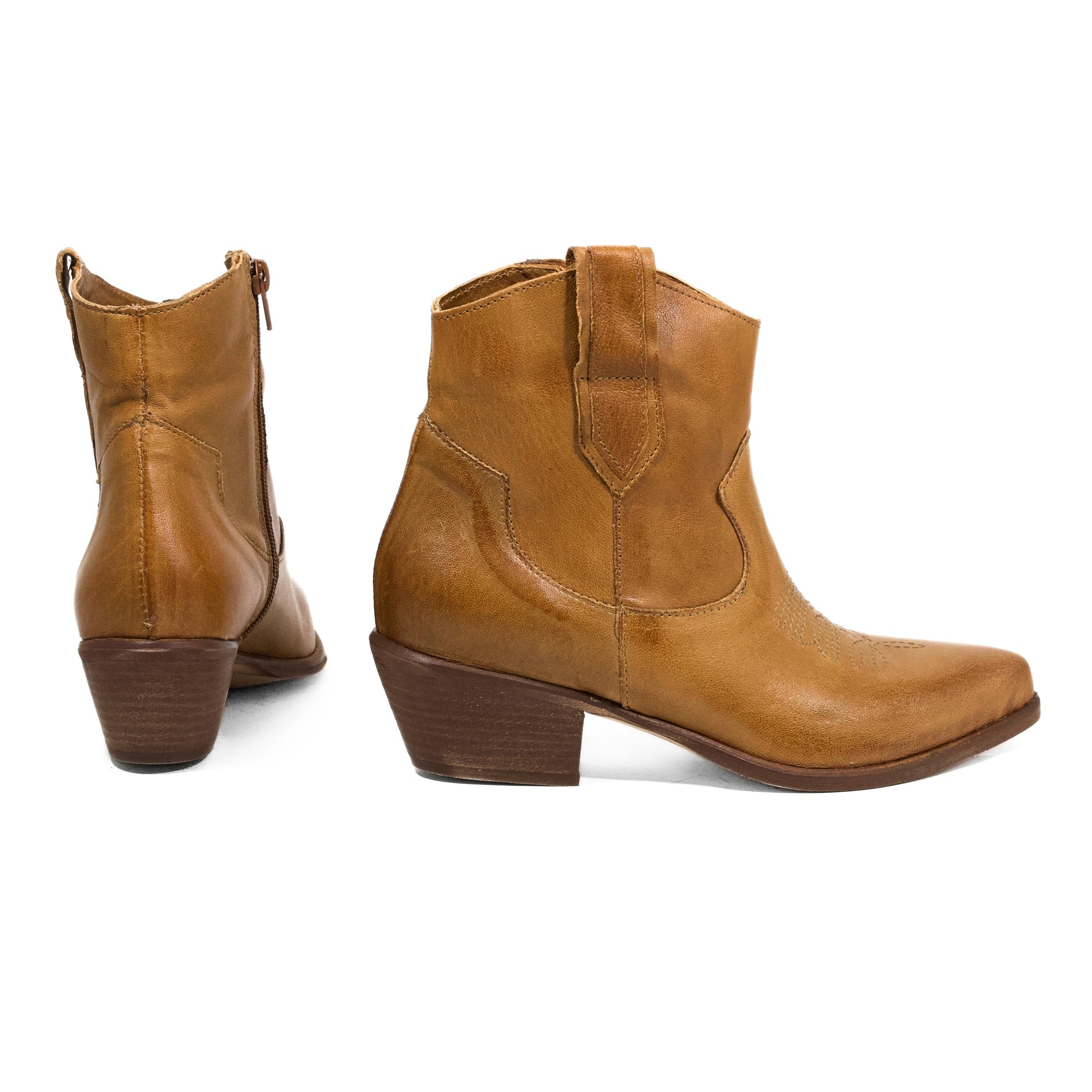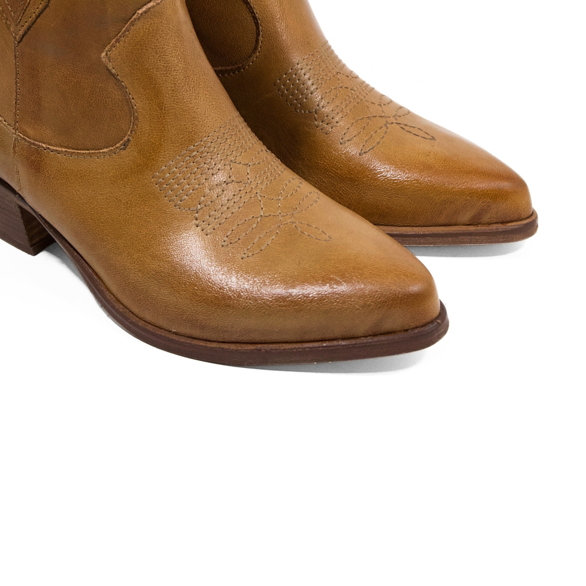 STIVALETTO CAMPEROS IN PELLE LAVATA CUOIO CON RICAMI WESTERN E TACCO CUBANO