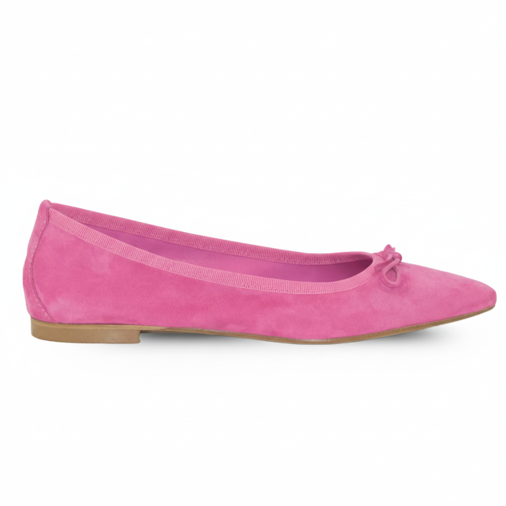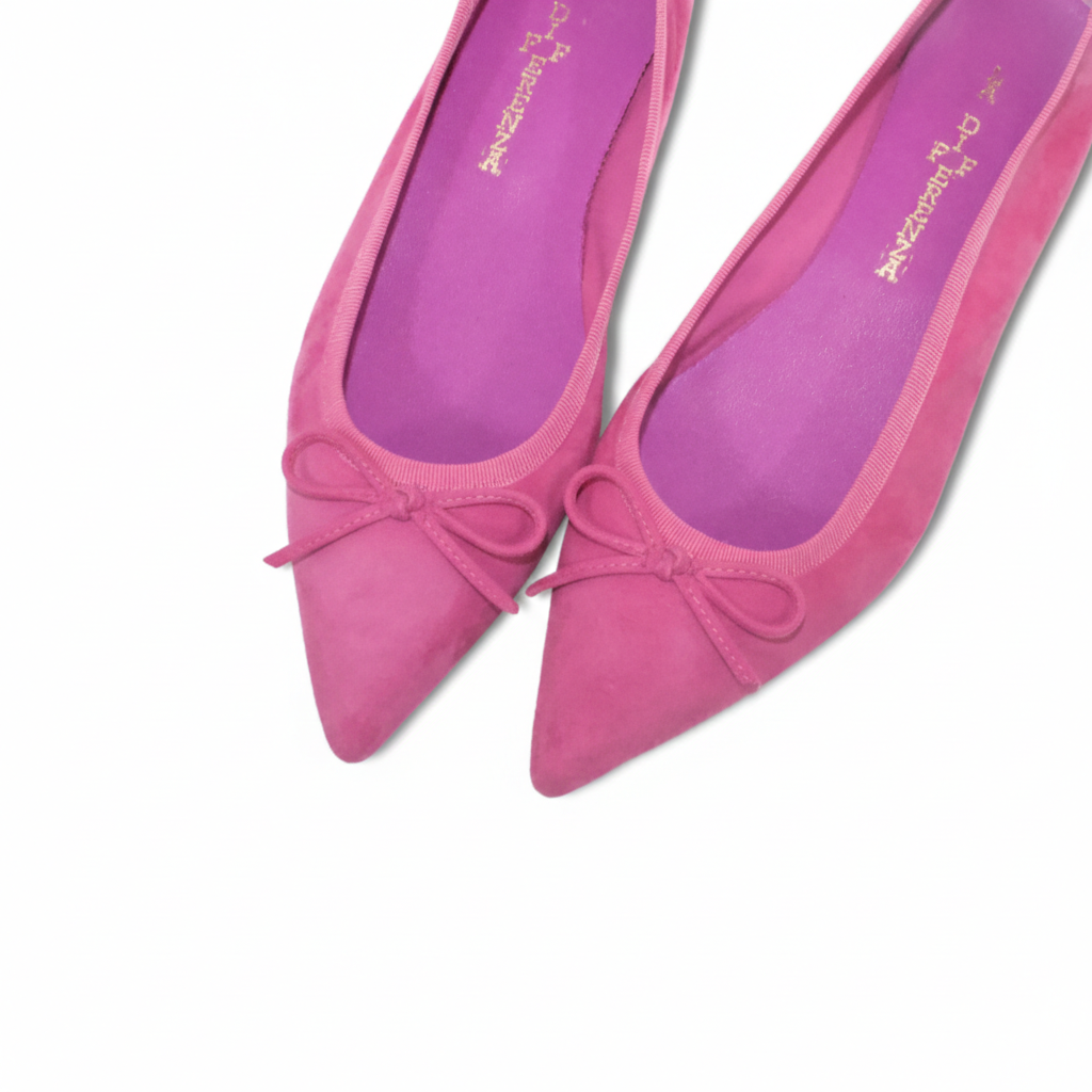 BALLERINA A PUNTA AFFUSOLATA CON FIOCCO IN CAMOSCIO FUXIA