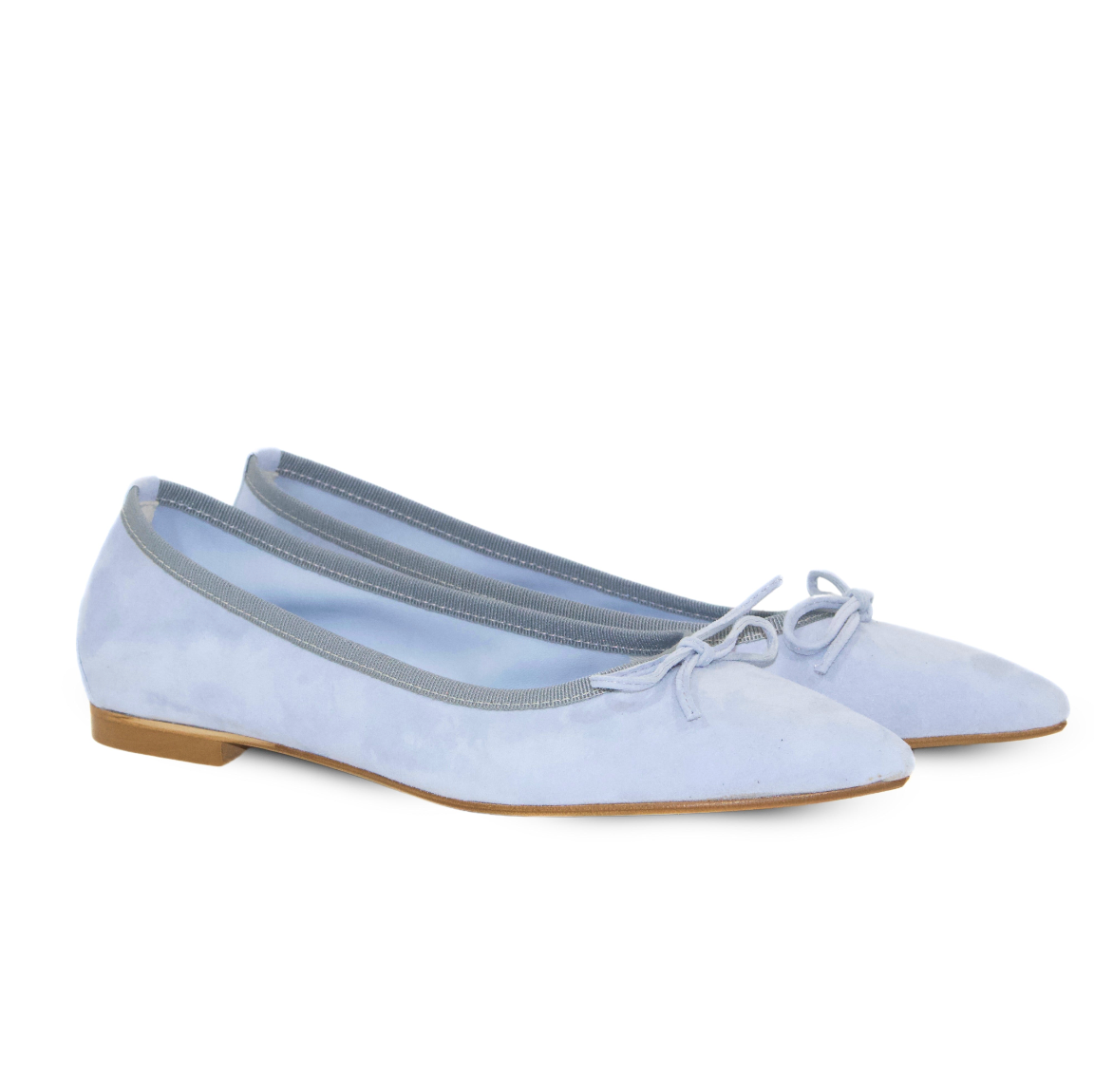 BALLERINA A PUNTA AFFUSOLATA CON FIOCCO IN CAMOSCIO JEANS