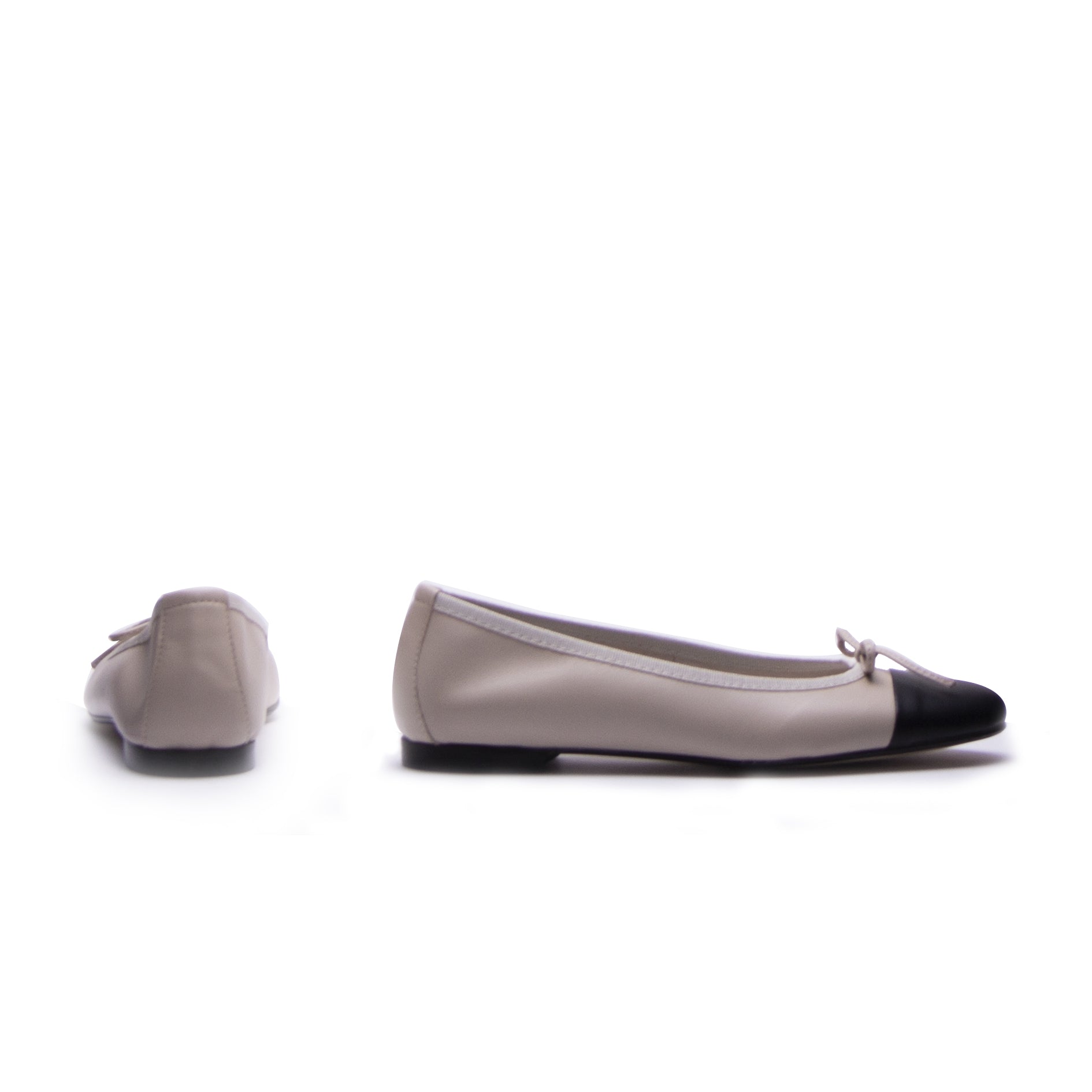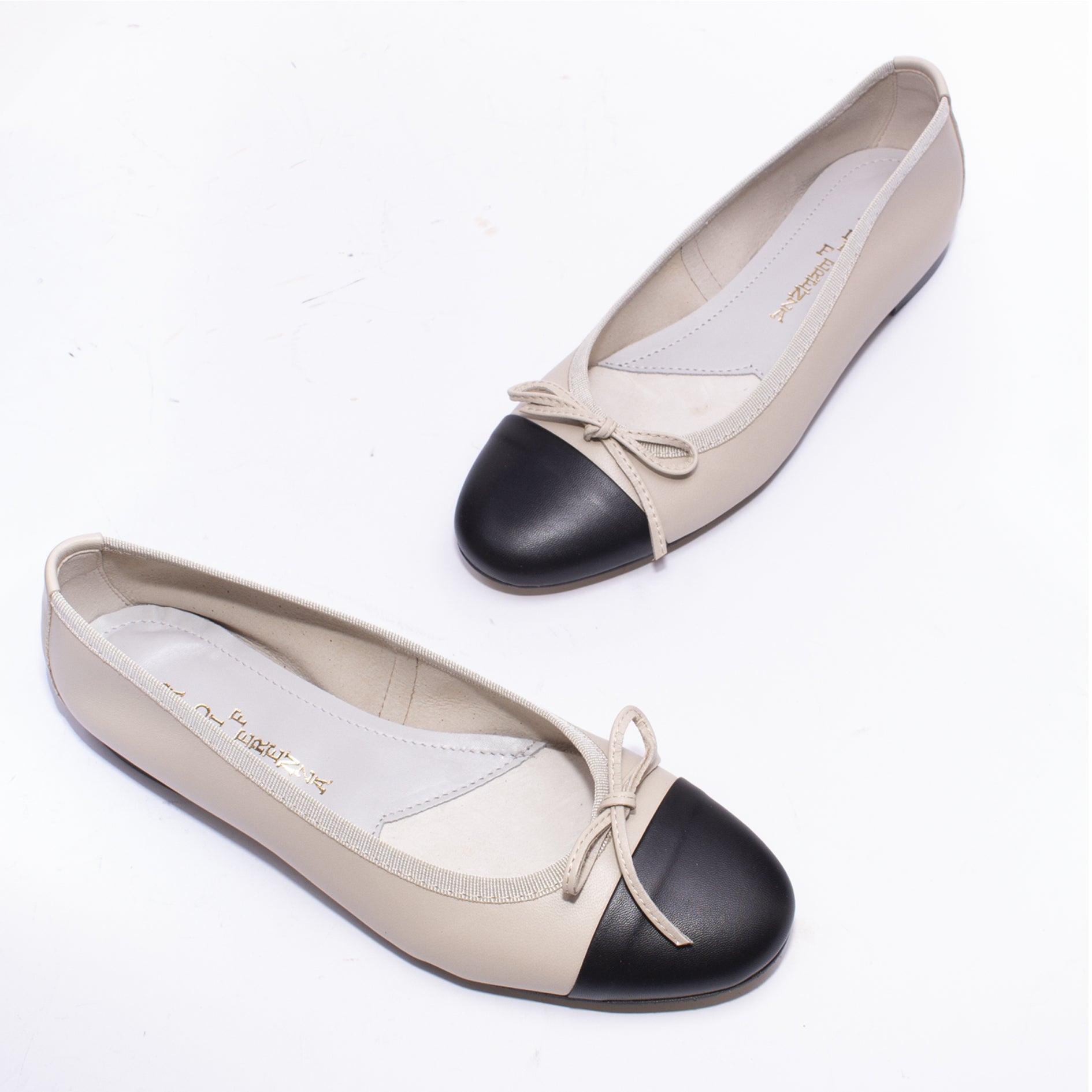 BALLERINA A PUNTA TONDA CON FIOCCO IN NAPPA BICOLORE CREMA E NERA