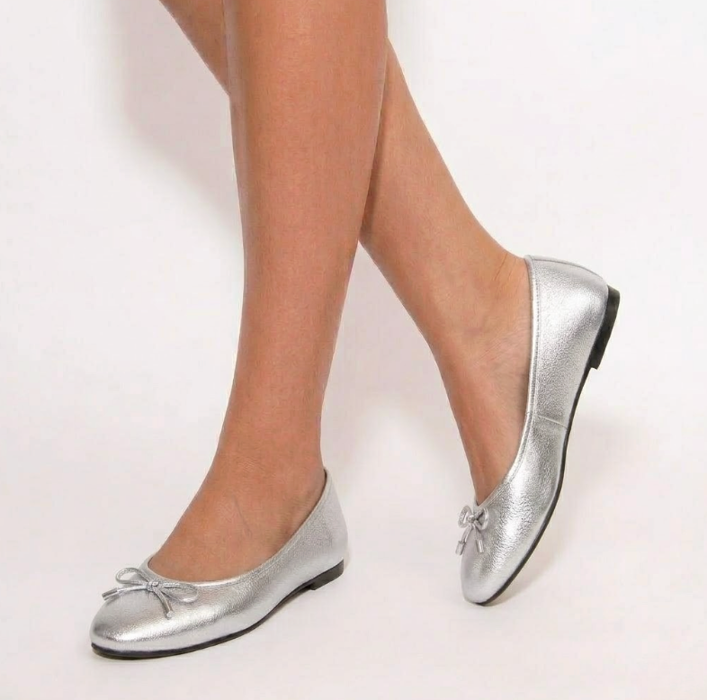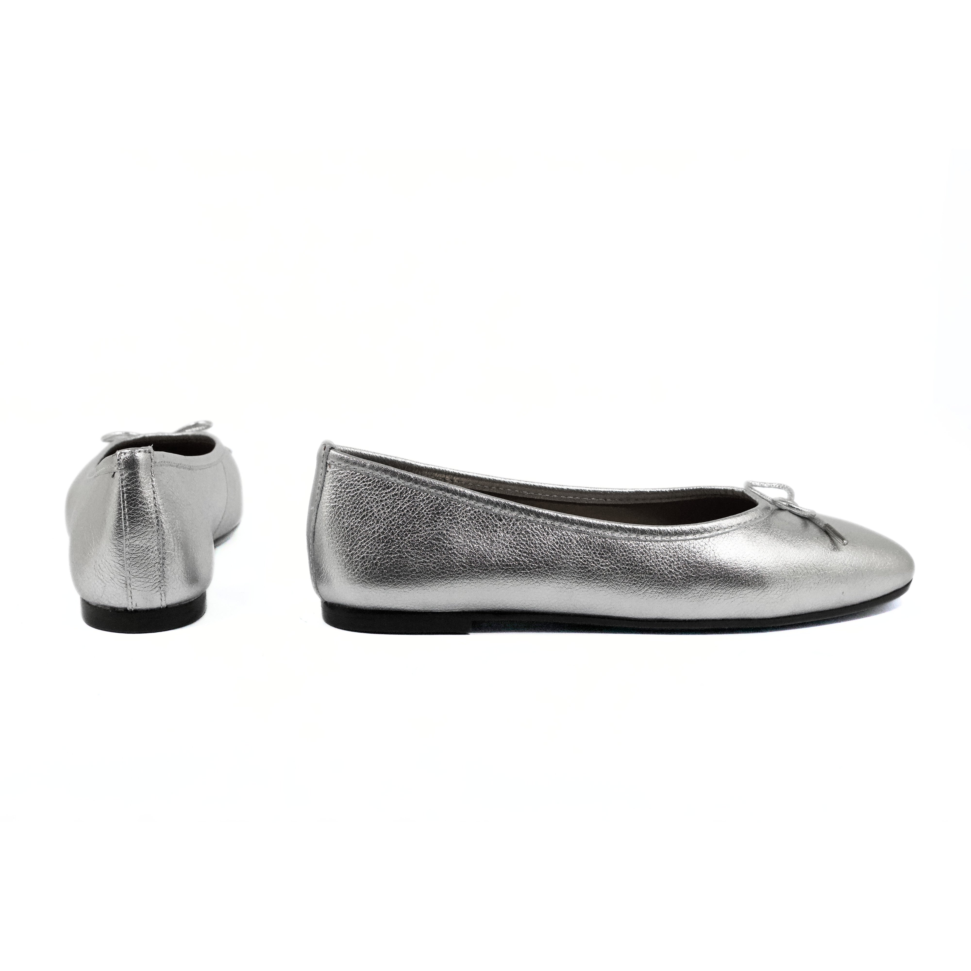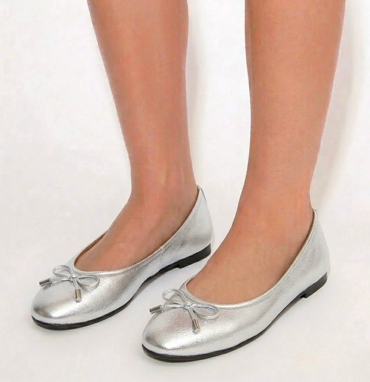BALLERINA IN LAMINATO ARGENTO CON DETTAGLIO FIOCCO