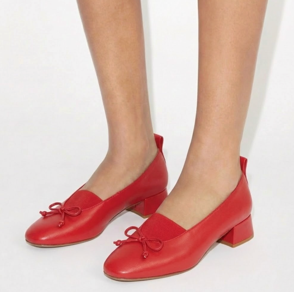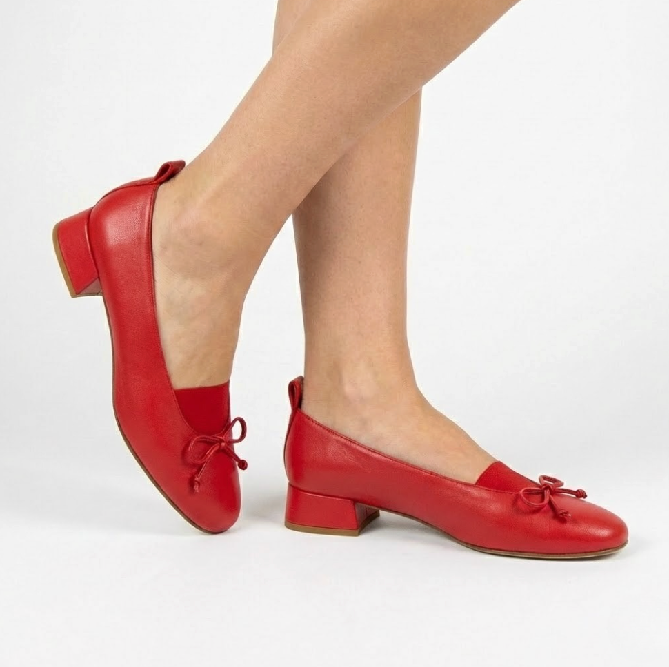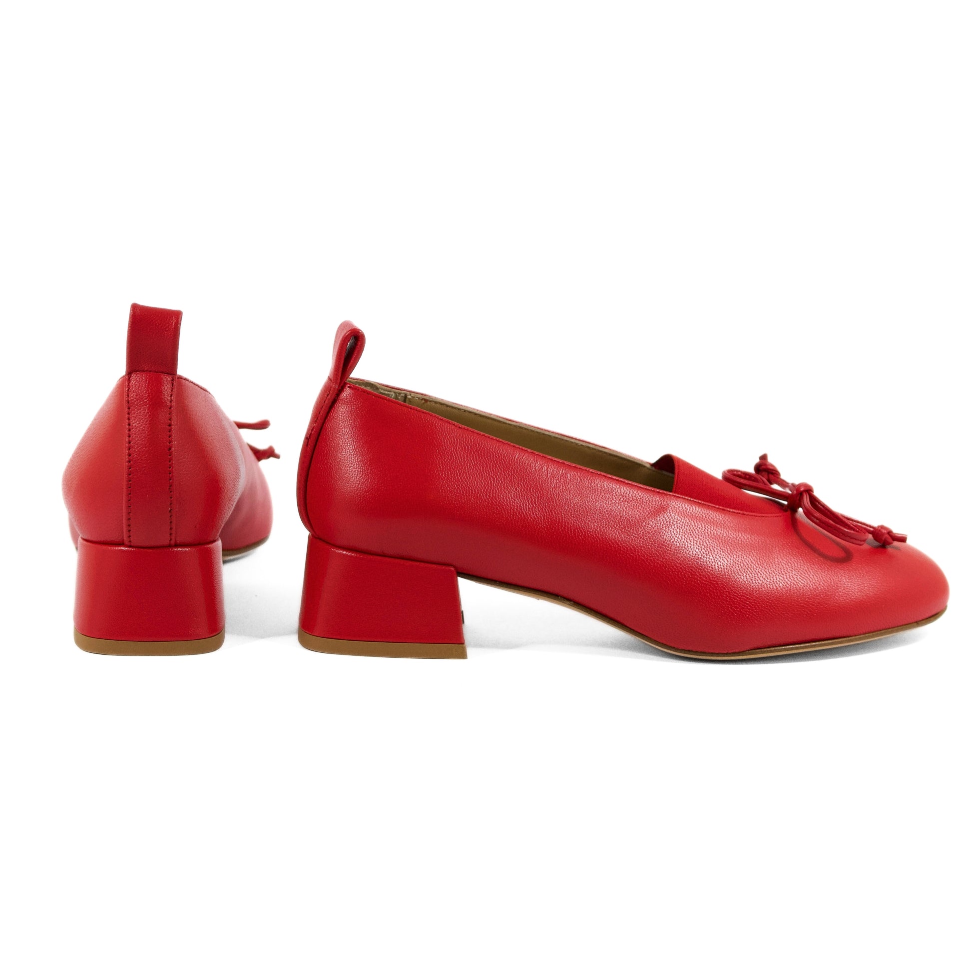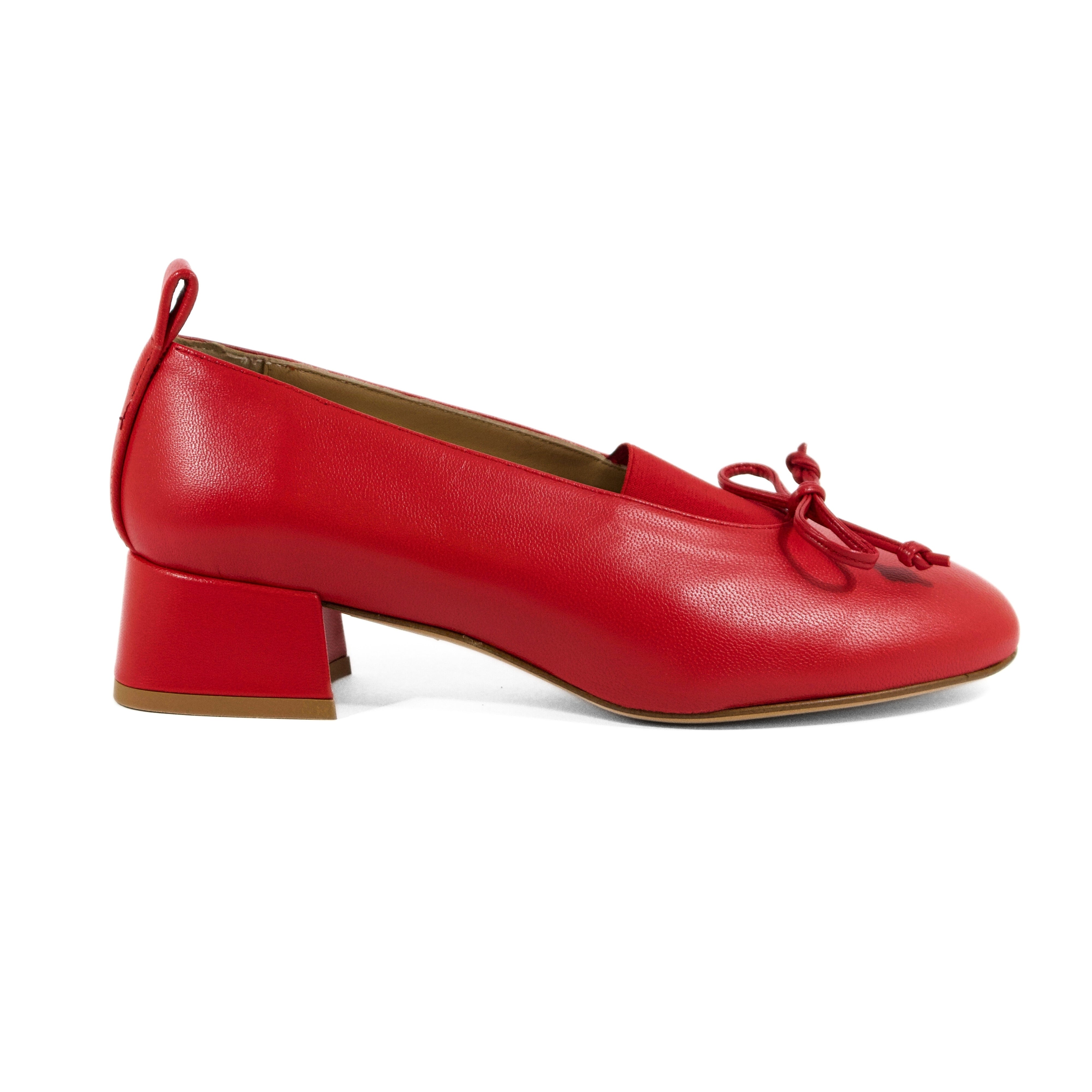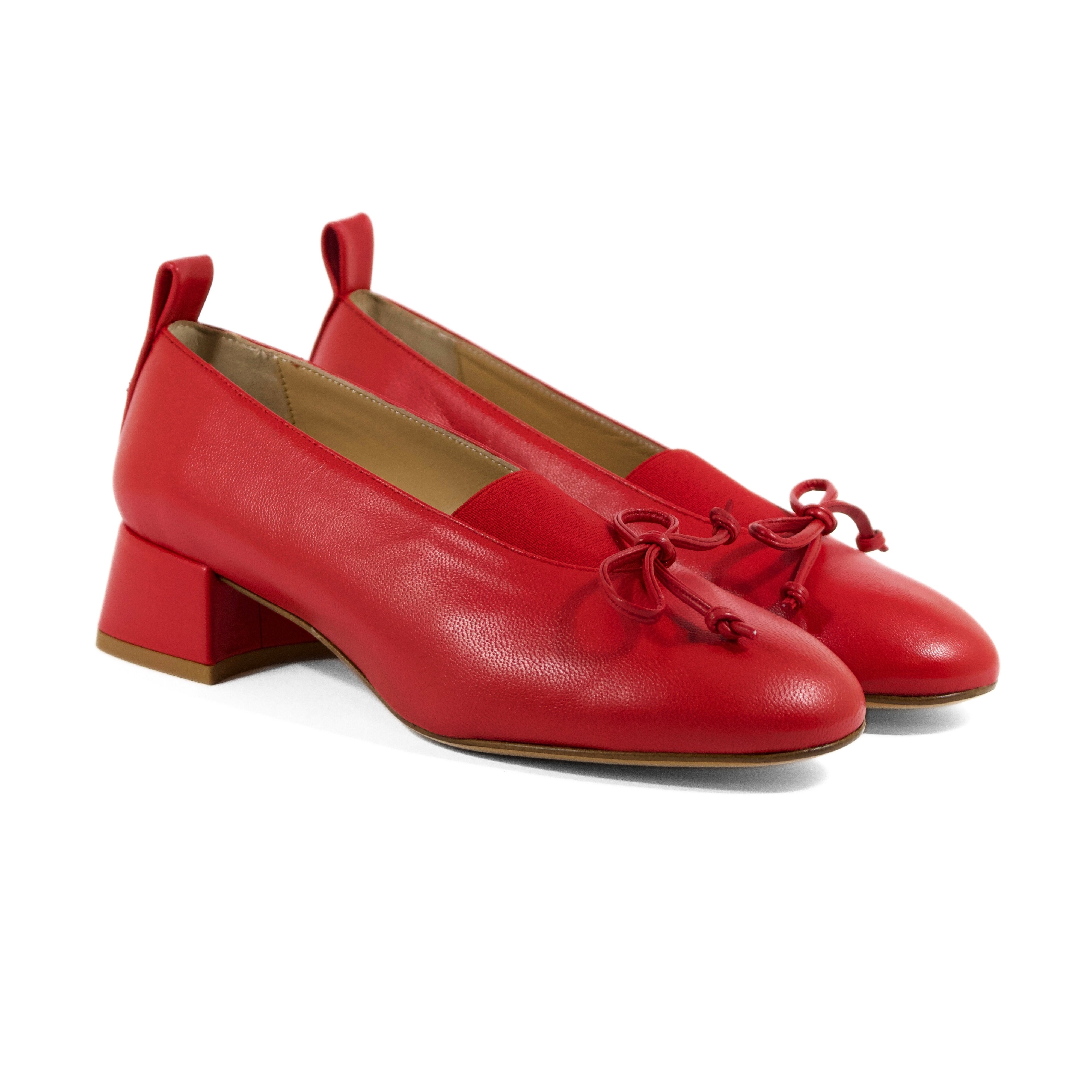 BALLERINA IN NAPPA ROSSA CON DETTAGLIO FIOCCO E TACCO 3,5 CM