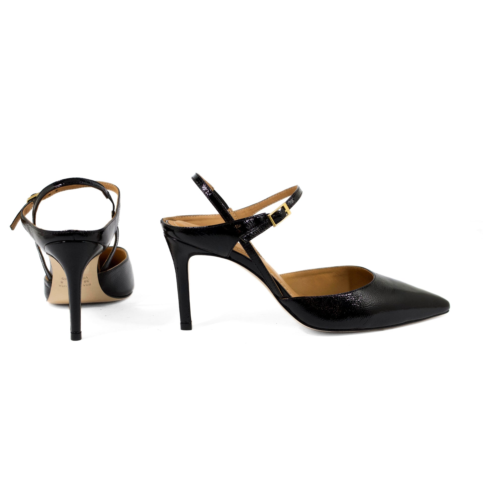 DÉCOLLETÉ SLINGBACK IN VERNICE NERA CON PUNTA SFILATA E TACCO ALTO