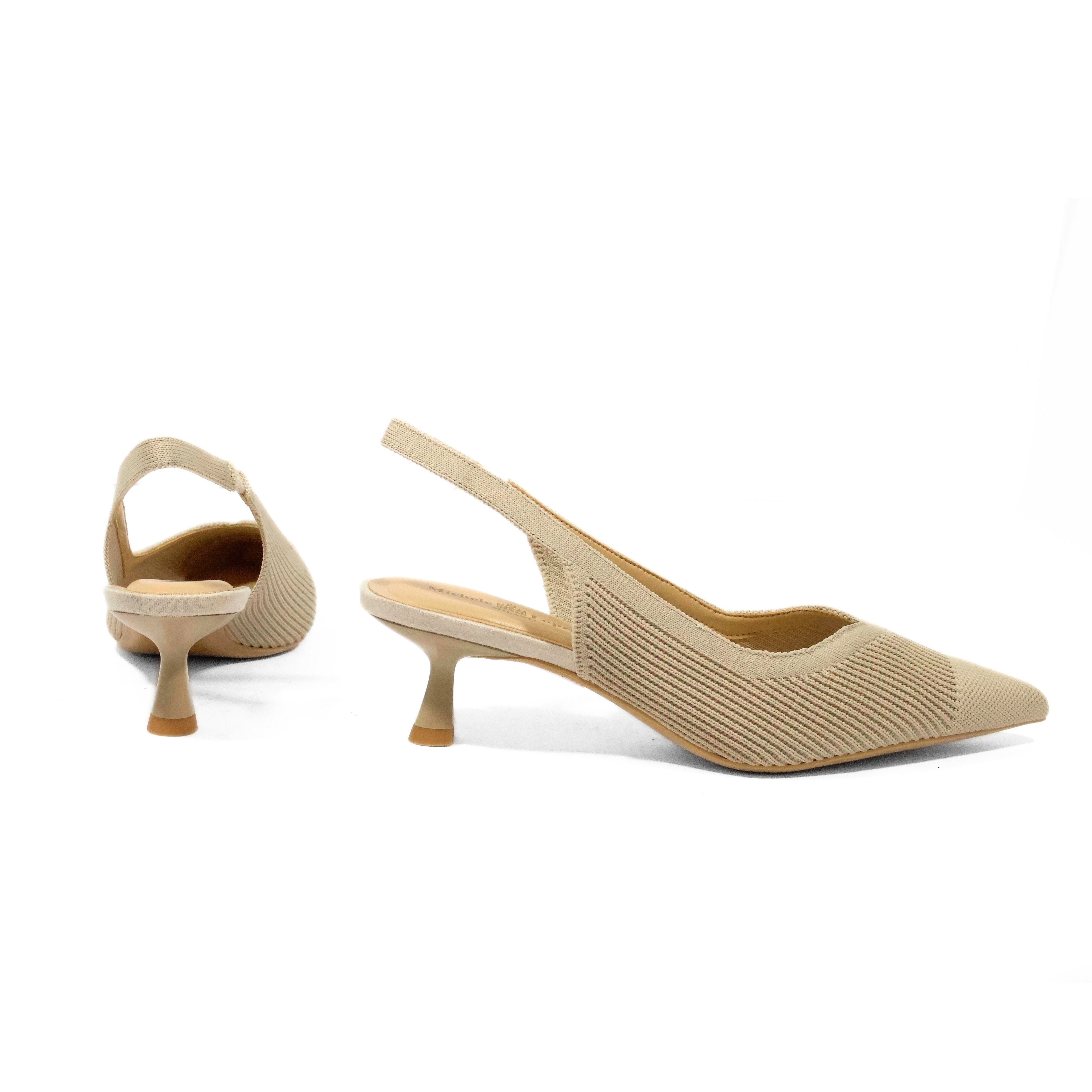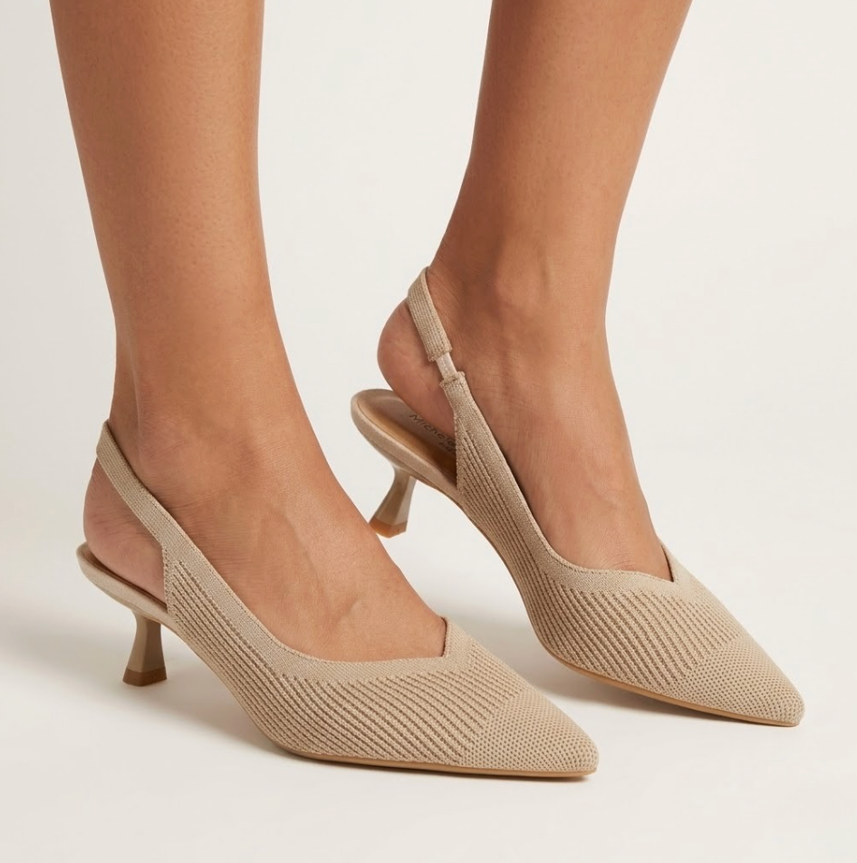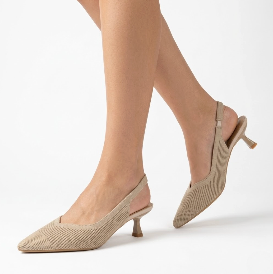DÉCOLLETÉ SLINGBACK IN TESSUTO FLYKNIT BEIGE CON PUNTA SFILATA E TACCO BASSO