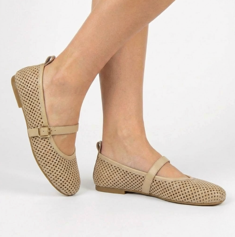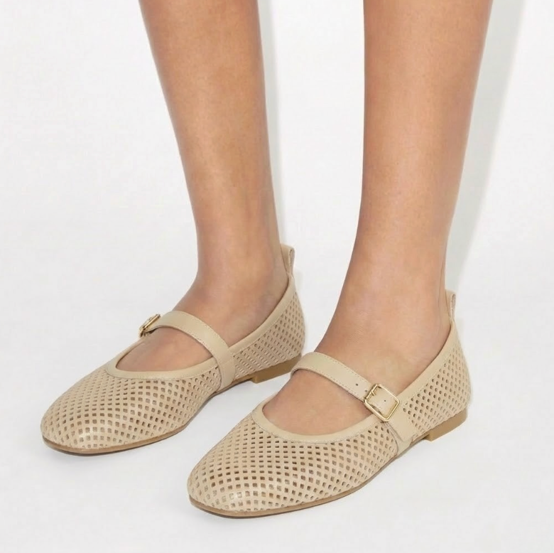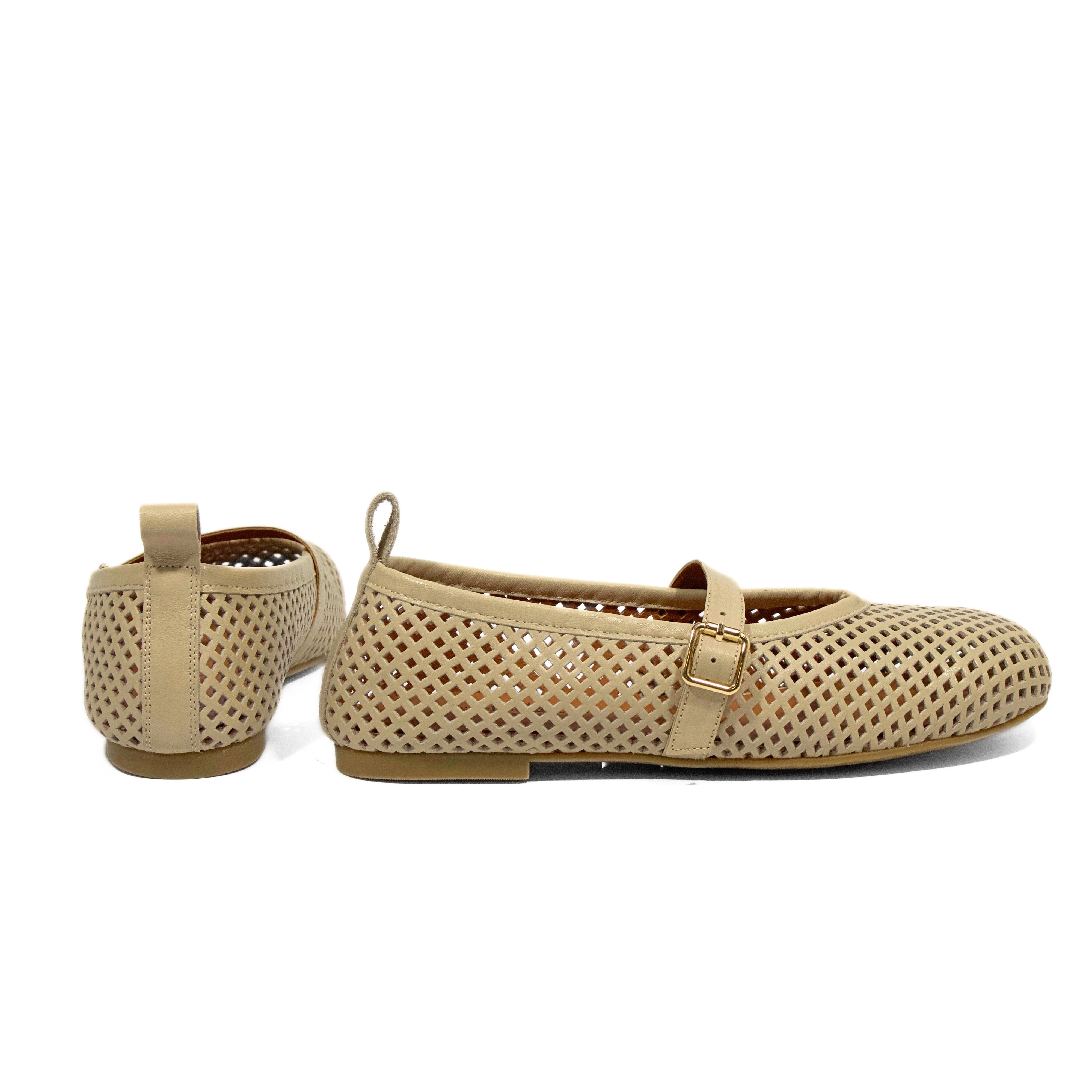 BALLERINA IN NAPPA LATTE CON TOMAIA TRAFORATA E CINTURINO