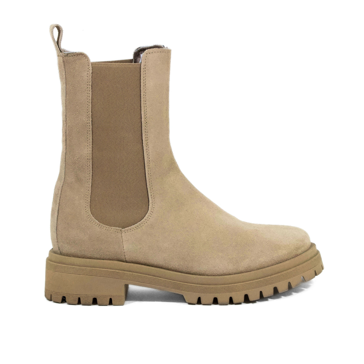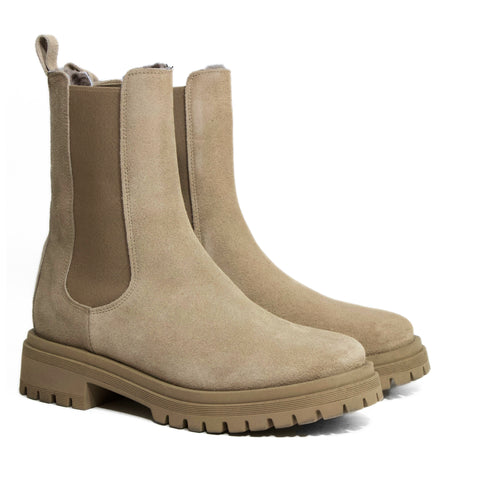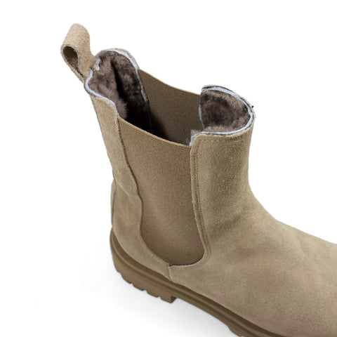 Lo stivaleletto Chelsea in camoscio tortora è l'emblema dell'eleganza casual, pensato per offrire comfort, calore e stile in ogni occasione.
