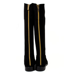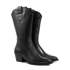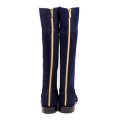 Il gambale alto e la silhouette ispirata ai modelli equestri slanciano la figura, mentre il tacco basso e discreto assicura stabilità e comodità per l'uso quotidiano.