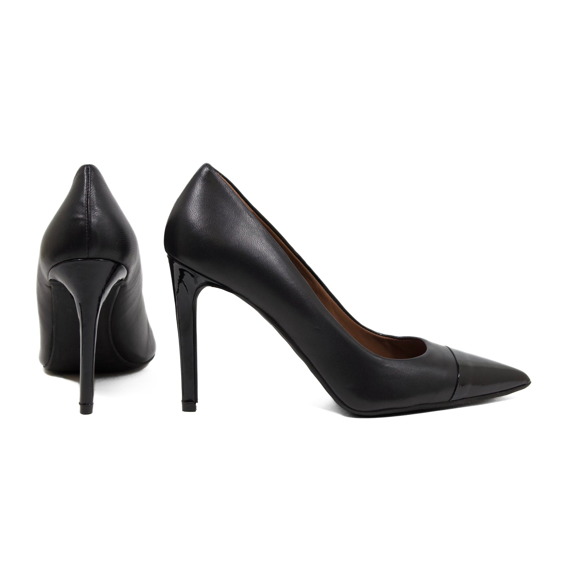 DÉCOLLETÉ IN NAPPA BICOLORE NERA CON PUNTA IN VERNICE E TACCO A SPILLO
