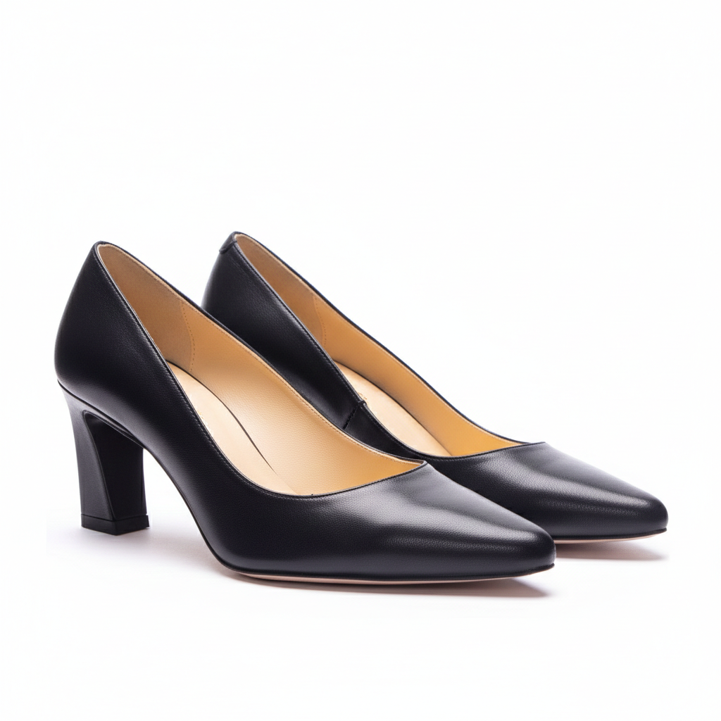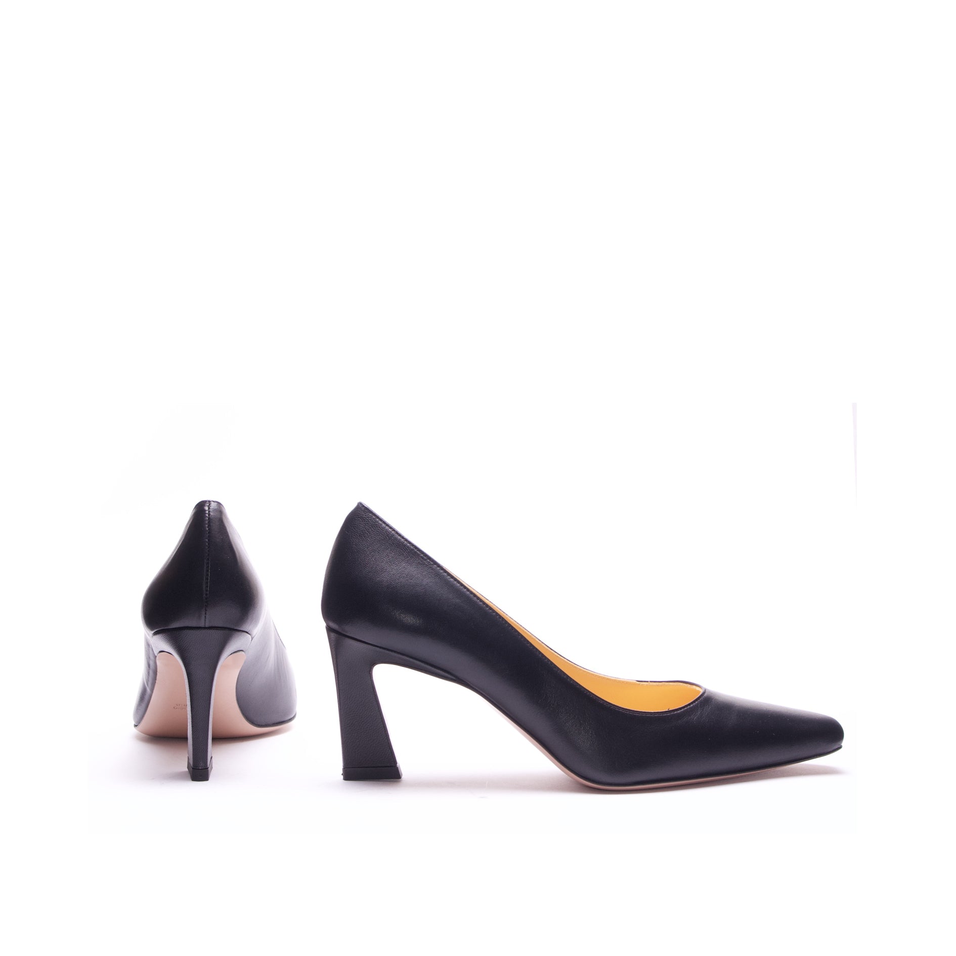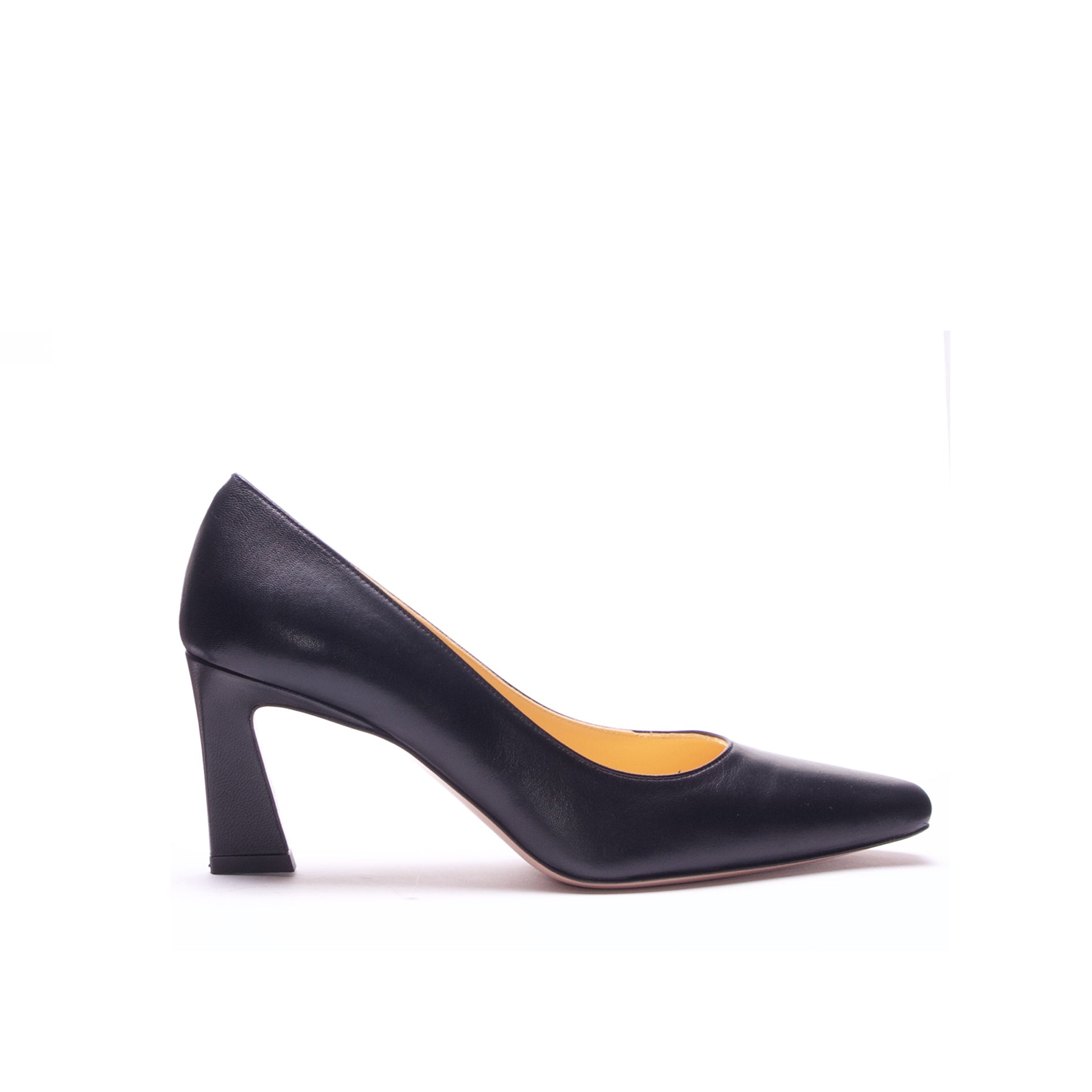 DÉCOLLETÉ IN NAPPA NERA CON PUNTA SFILATA E TACCO A TRAPEZIO