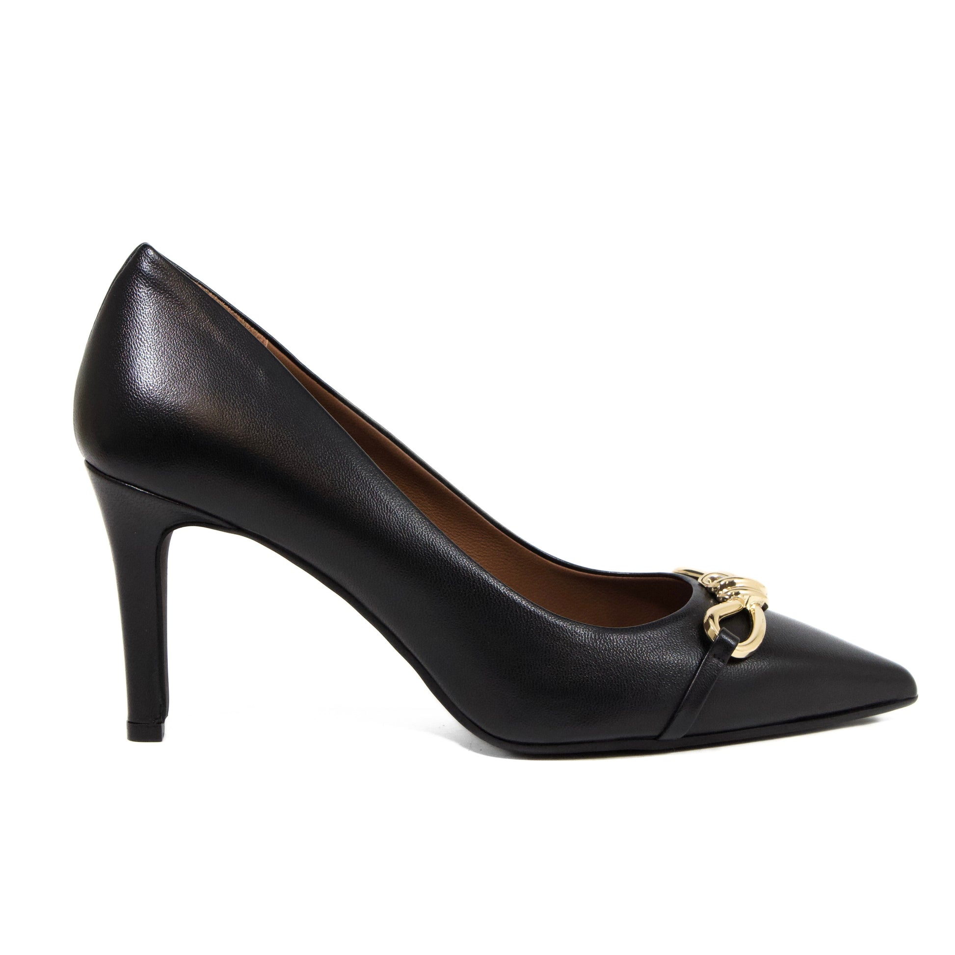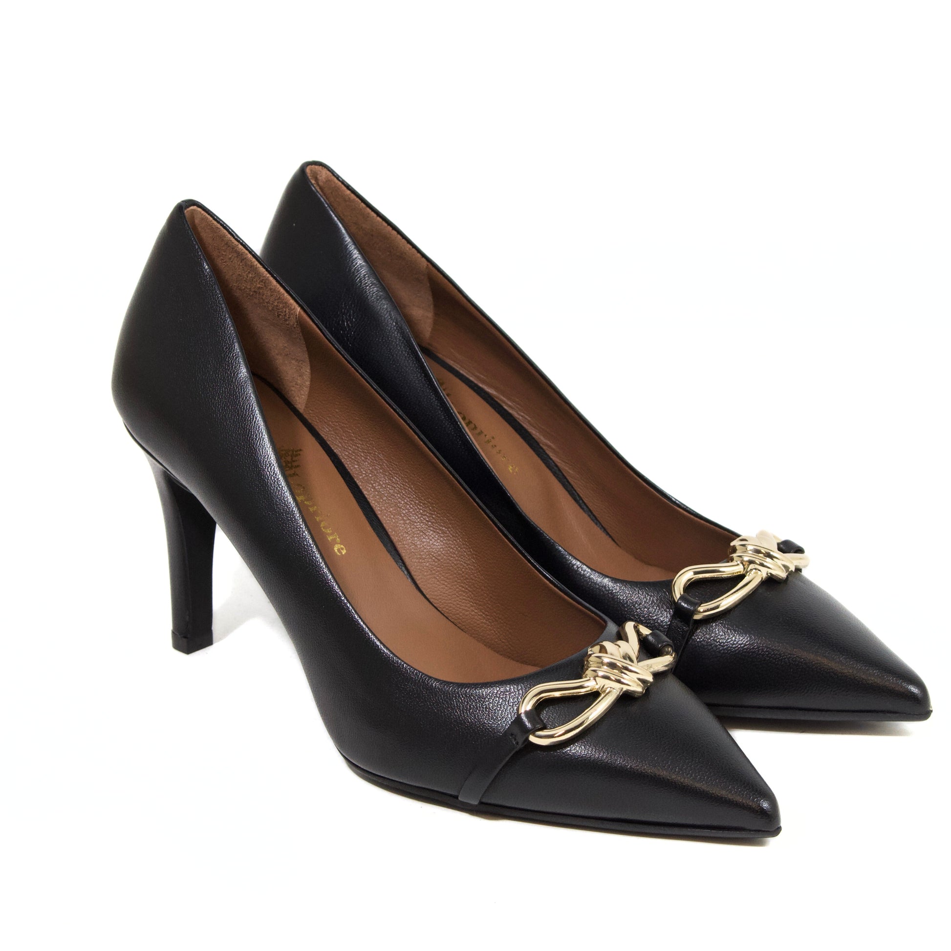 DÉCOLLETÉ IN NAPPA NERO CON PUNTA SFILATA E MORSETTO DORATO