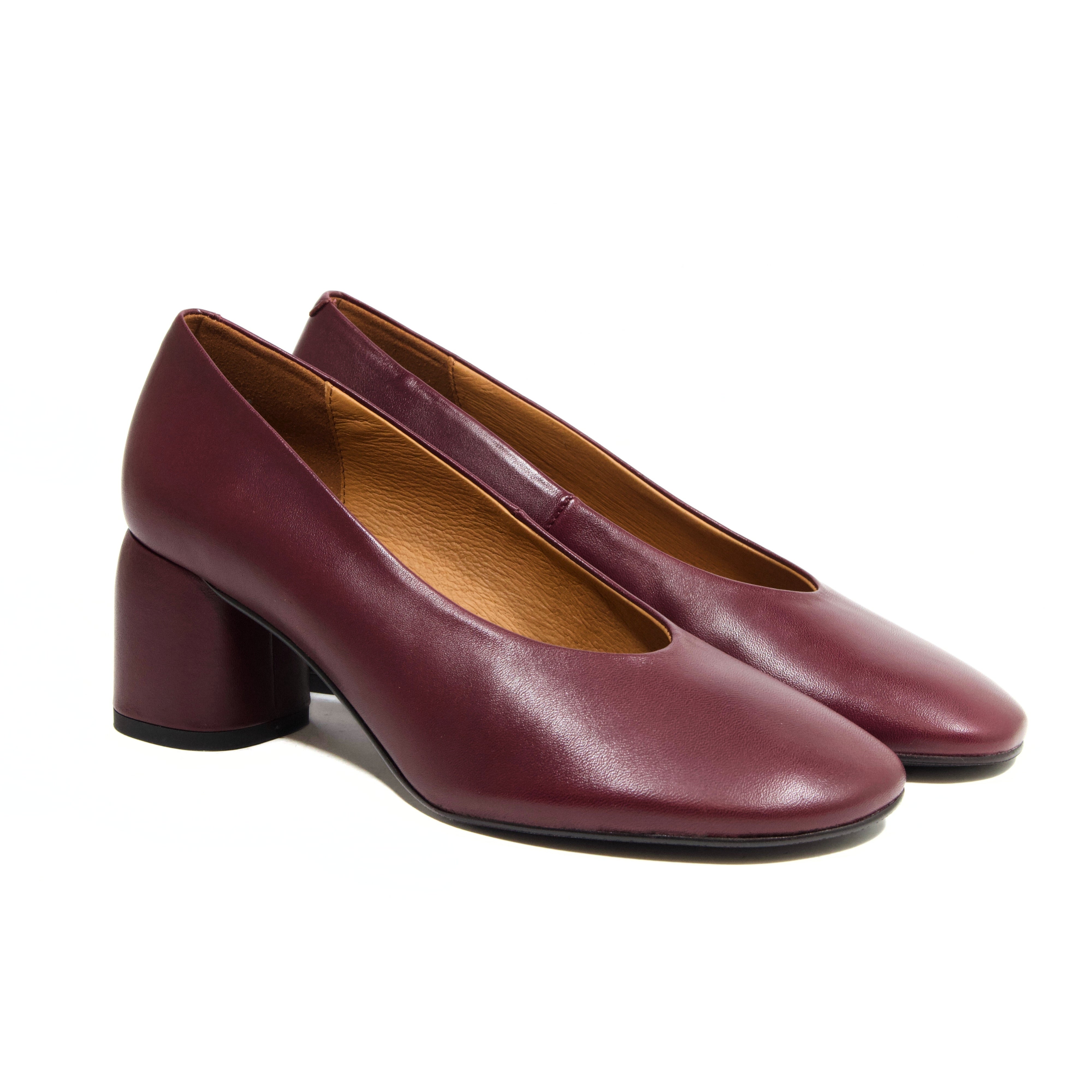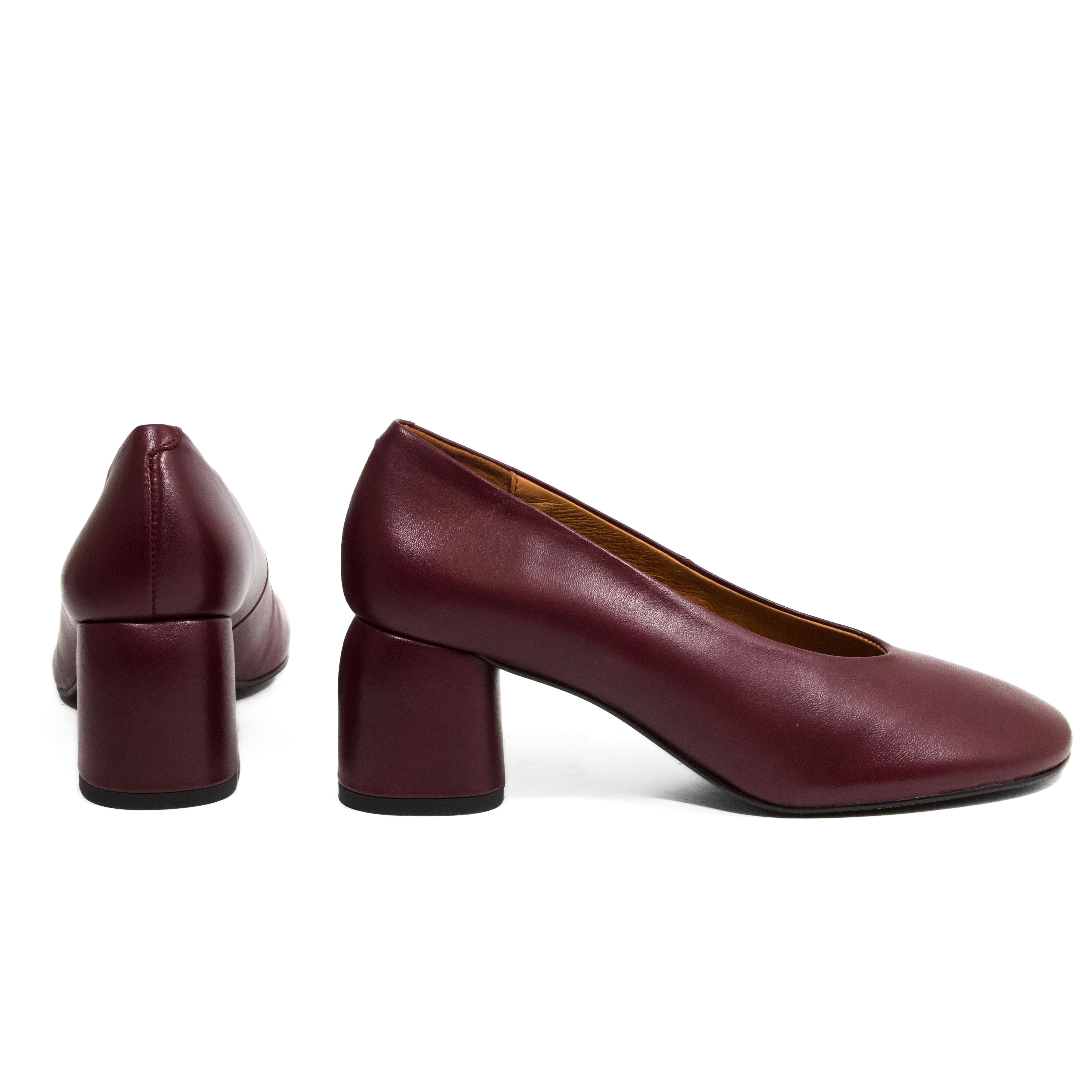 DÉCOLLETÉ IN PELLE BORGOGNA CON TACCO CILINDRICO E SCOLLO A U
