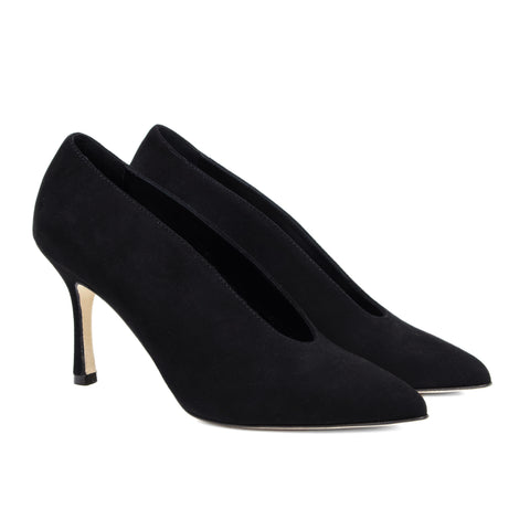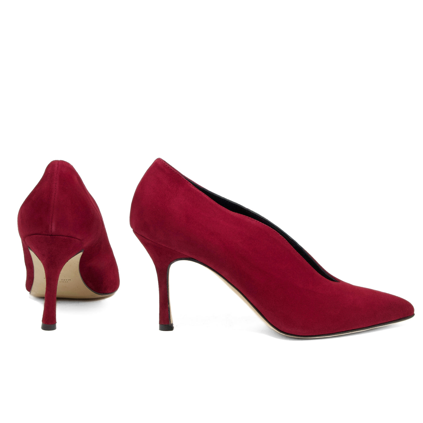 Décolleté in morbido camoscio rosso rubino con elegante scollatura a V che slancia la linea del piede. La punta affusolata e il tacco sottile di 8 cm donano femminilità e raffinatezza. Perfette per cerimonie, serate speciali o per dare un tocco di colore e classe ai tuoi outfit quotidiani.
