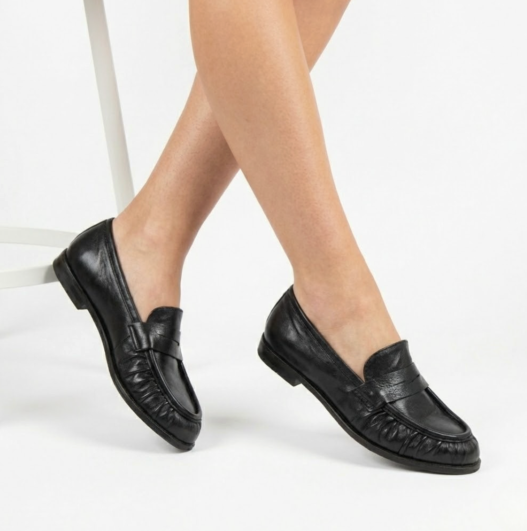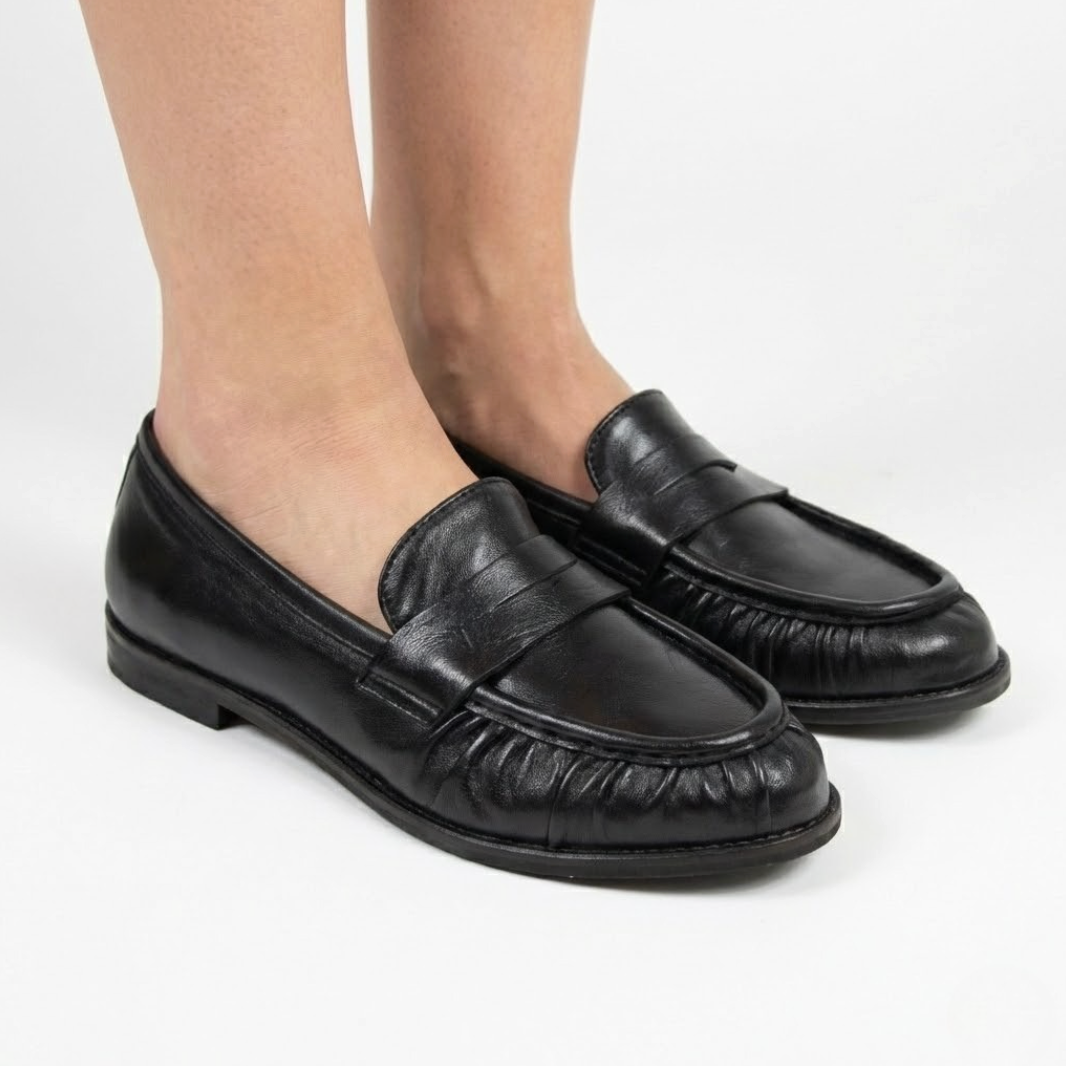 MOCASSINO IN NAPPA NERA CON VASCHETTA ARRICCIATA