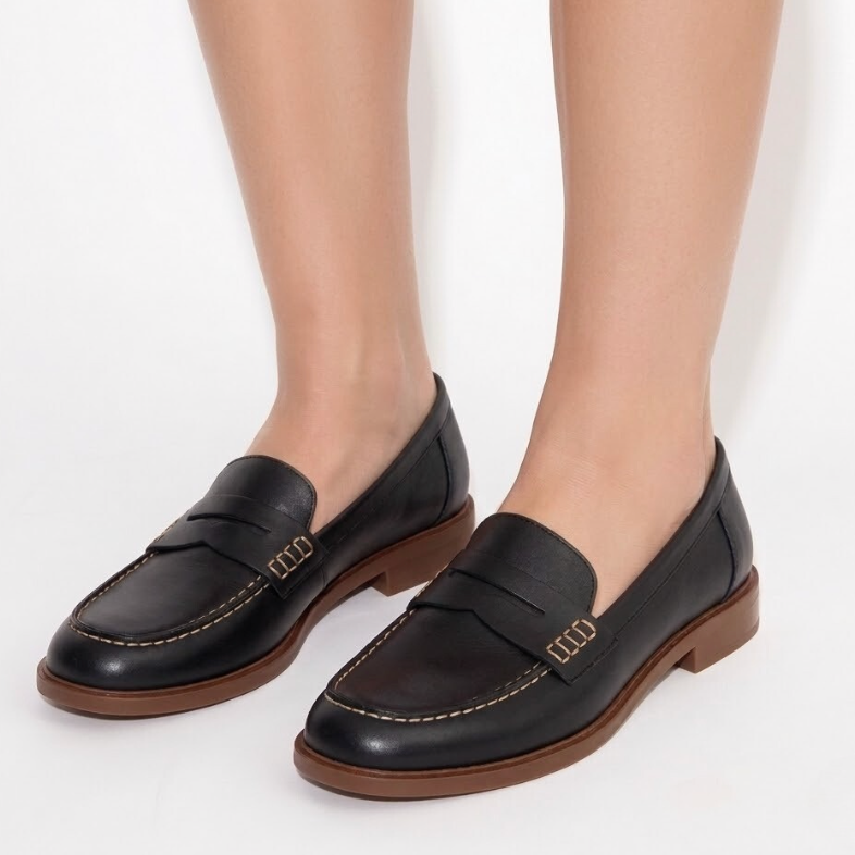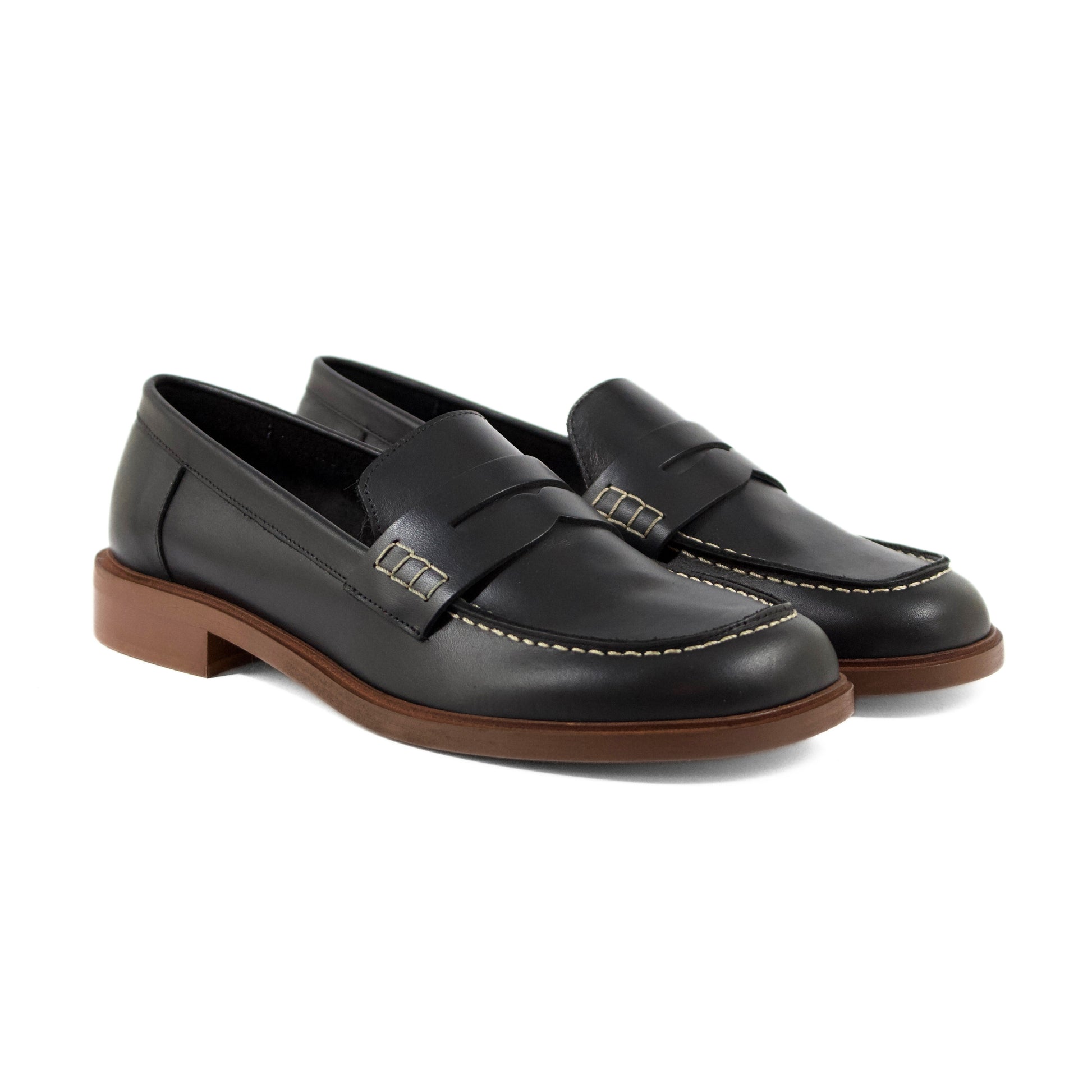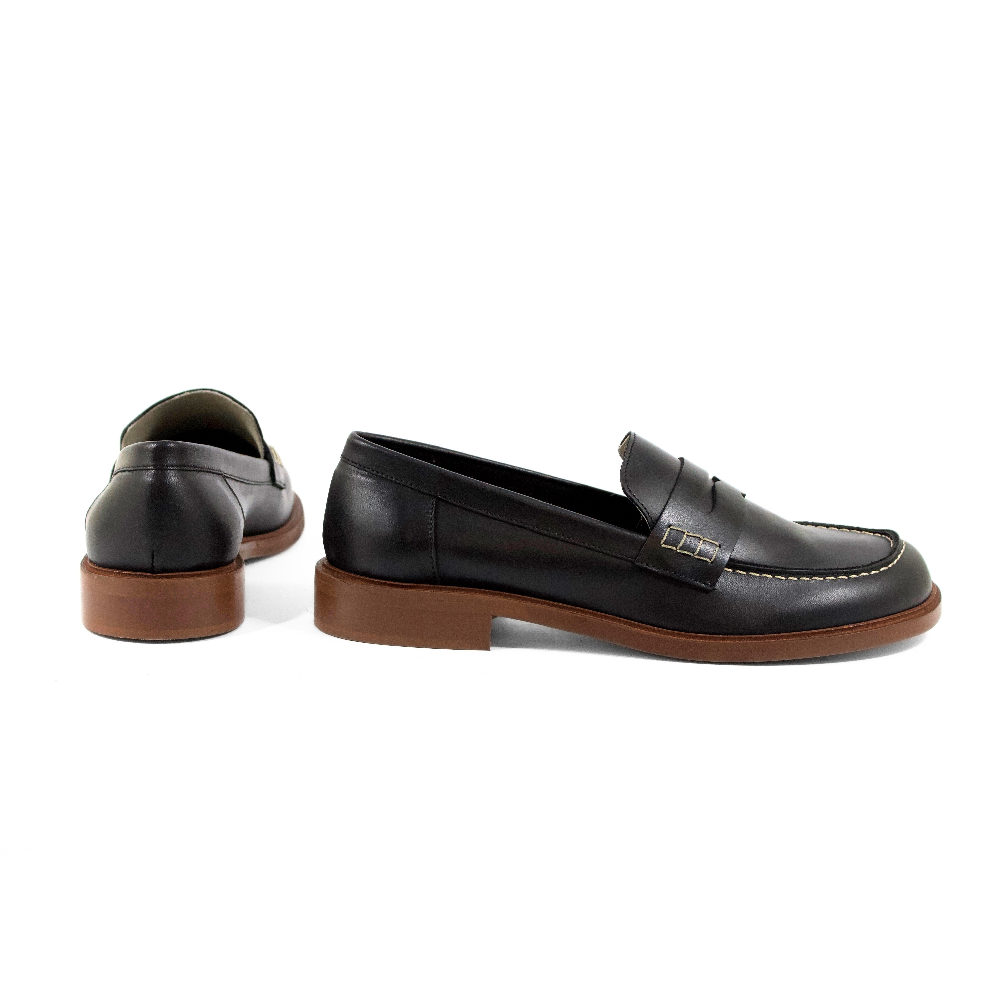 MOCASSINO IN VITELLO NERO CON MASCHERINA E SUOLA A CONTRASTO