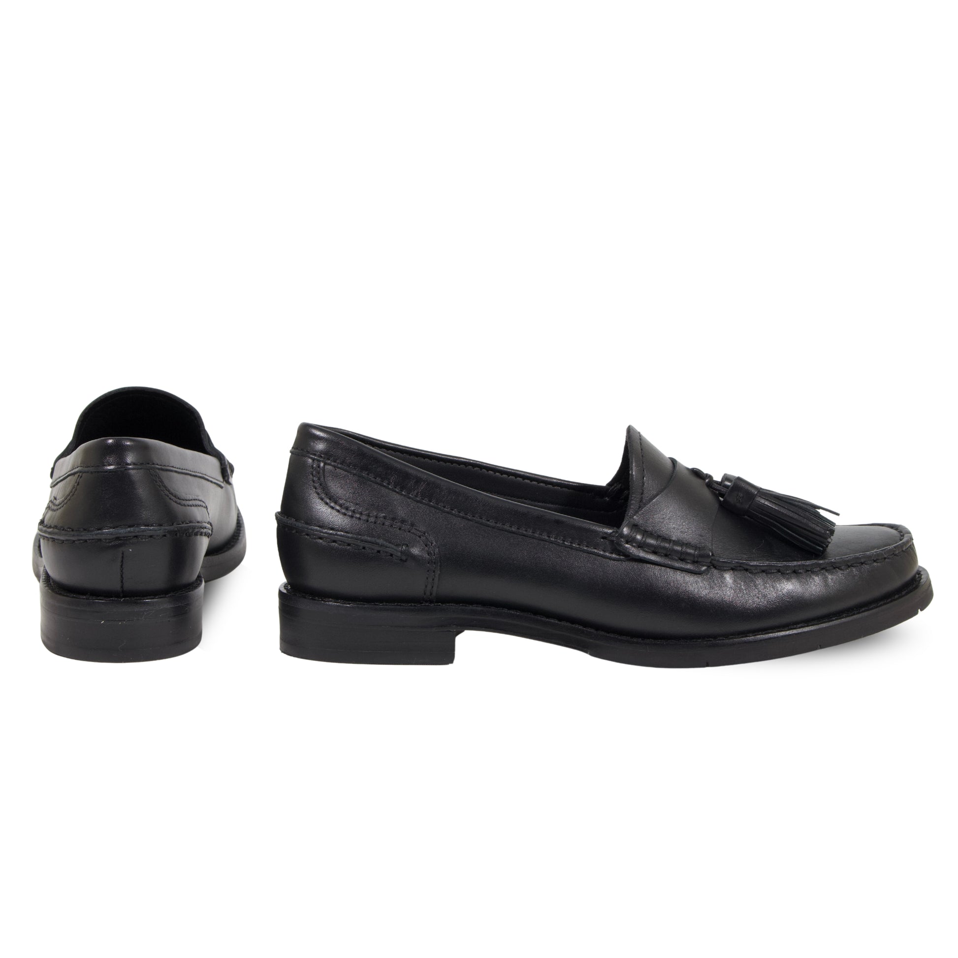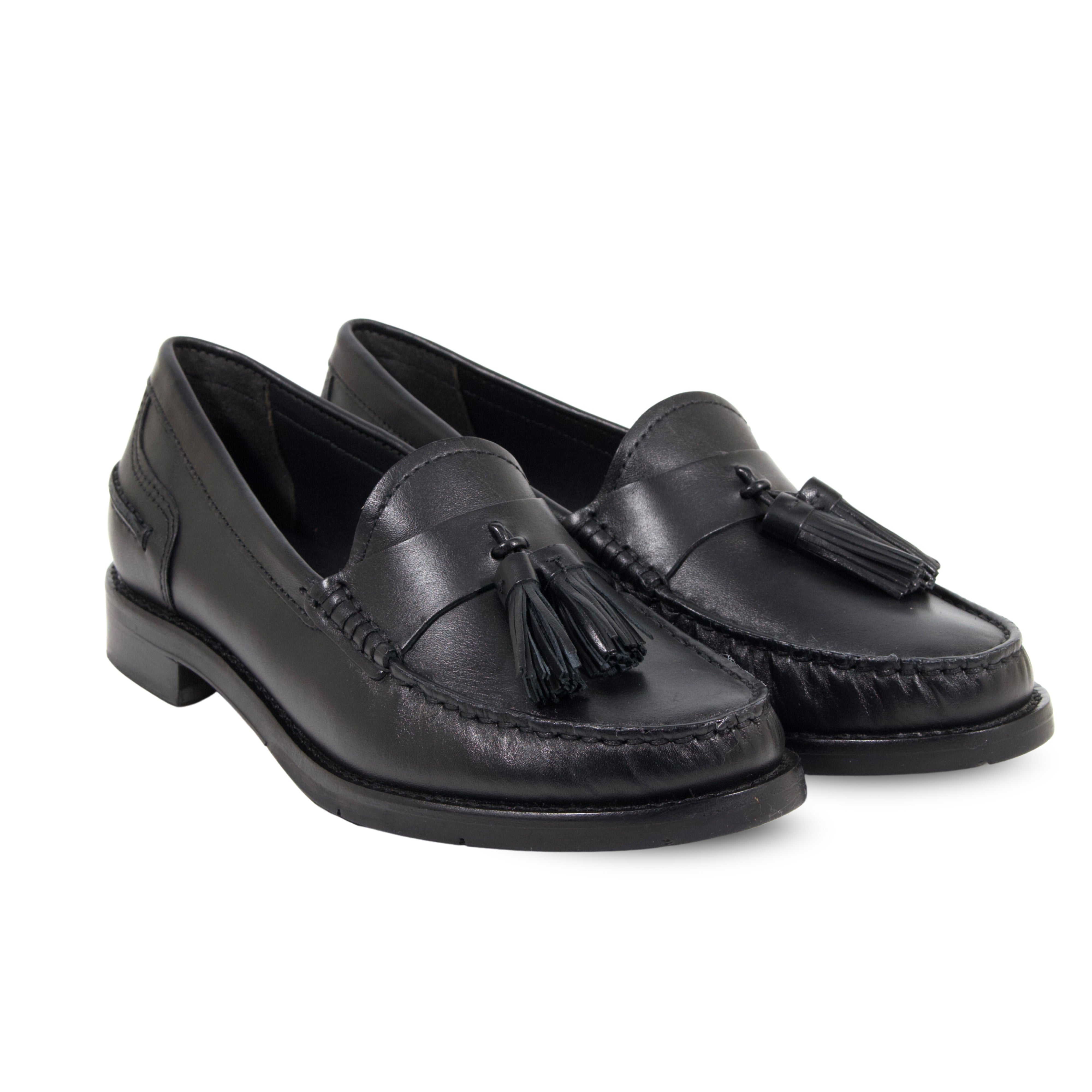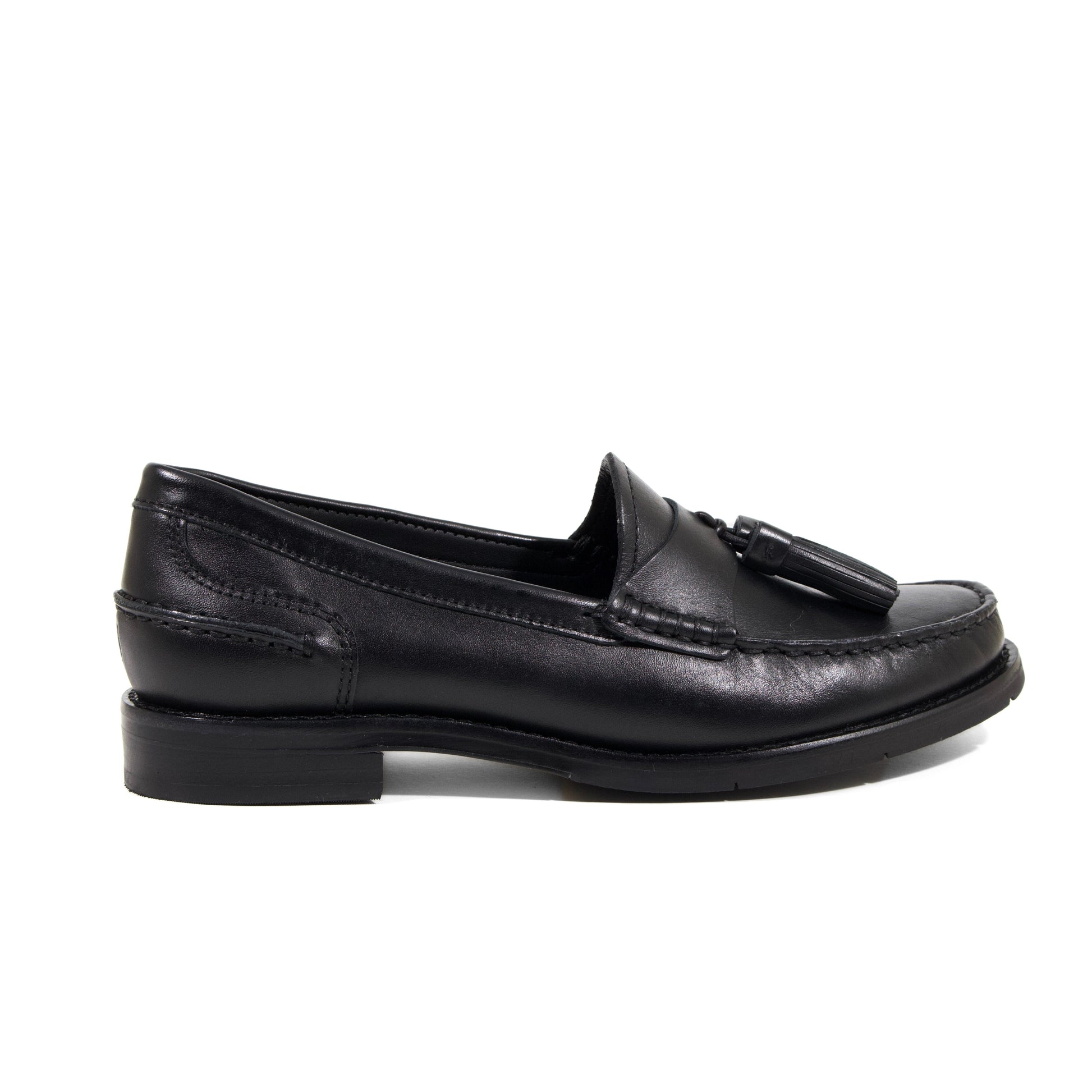 MOCASSINO MODELLO COLLEGE IN PELLE NERA CON CUCITURE A VISTA E NAPPINE IN TINTA
