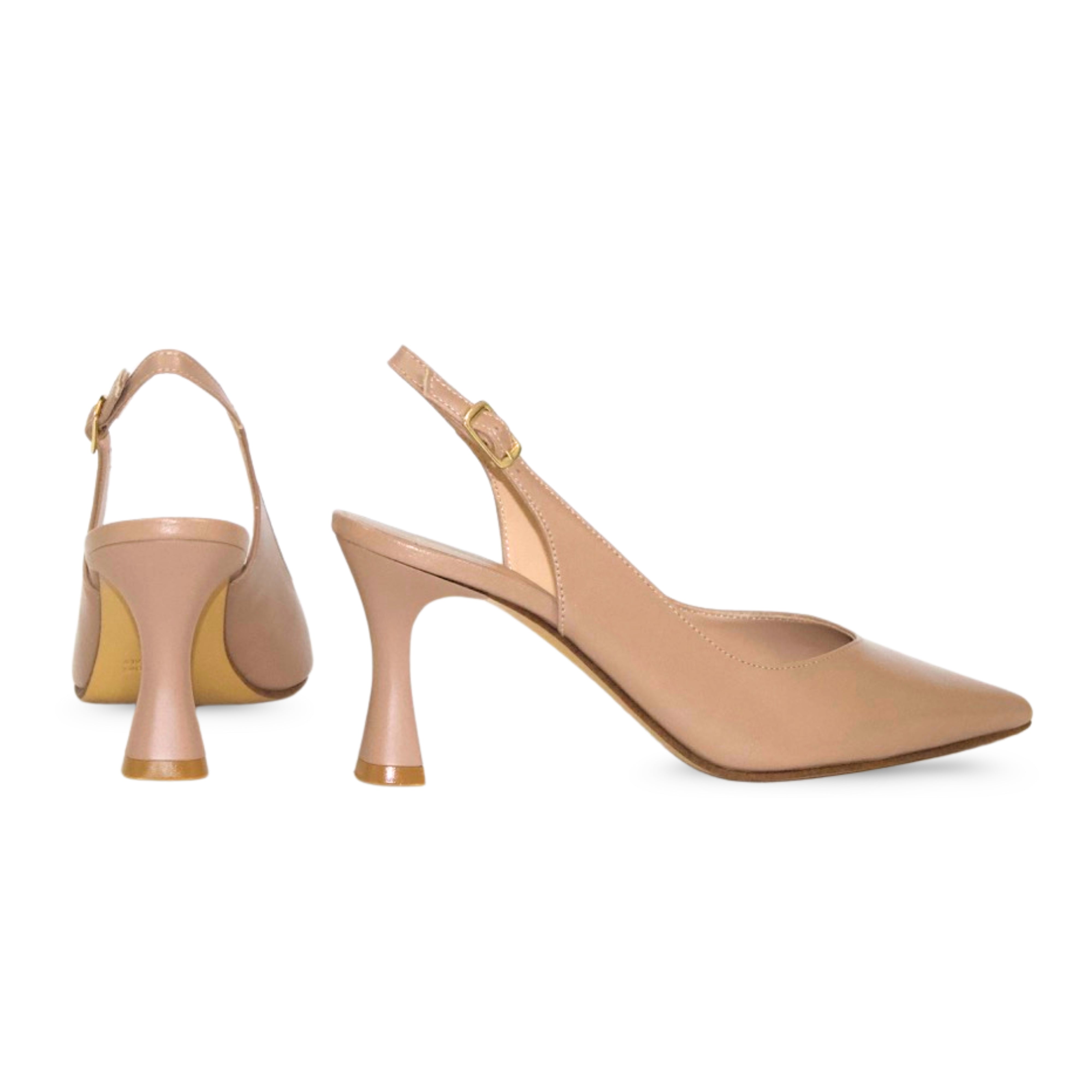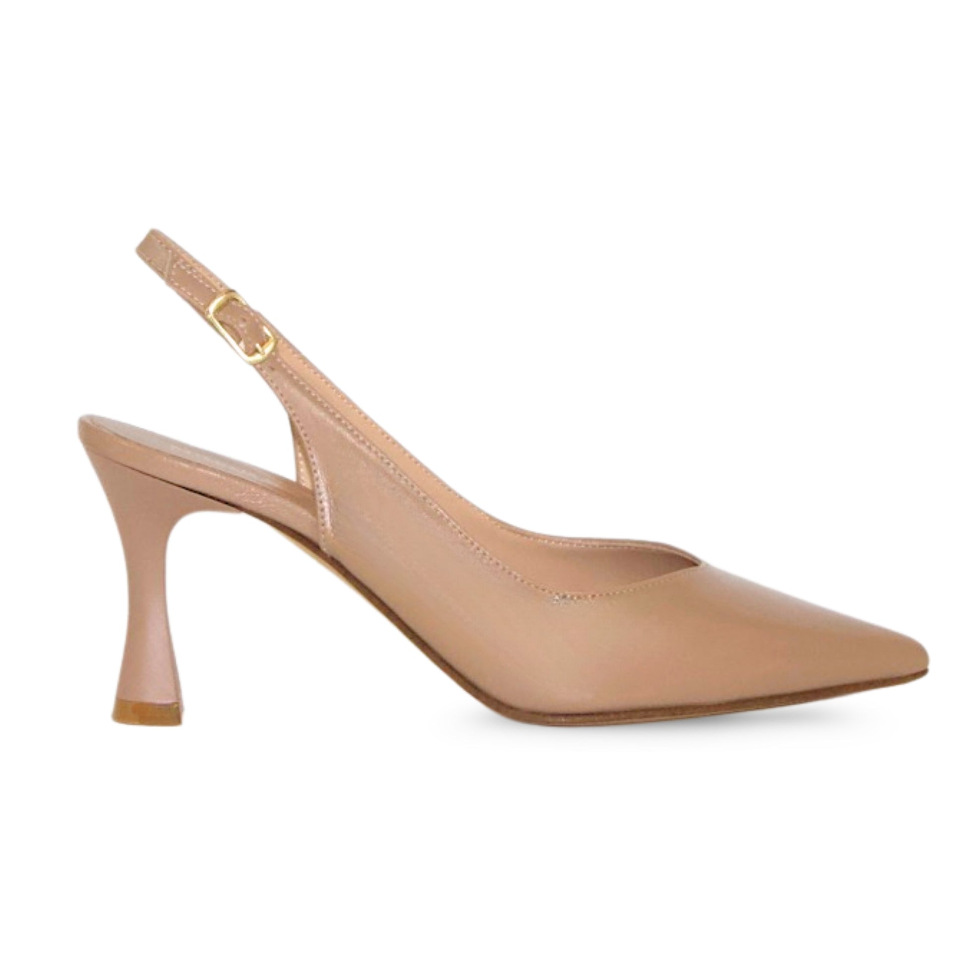 SANDALO SLINGBACK IN NAPPA TAUPE CON PUNTA SFILATA E TACCO A ROCCHETTO