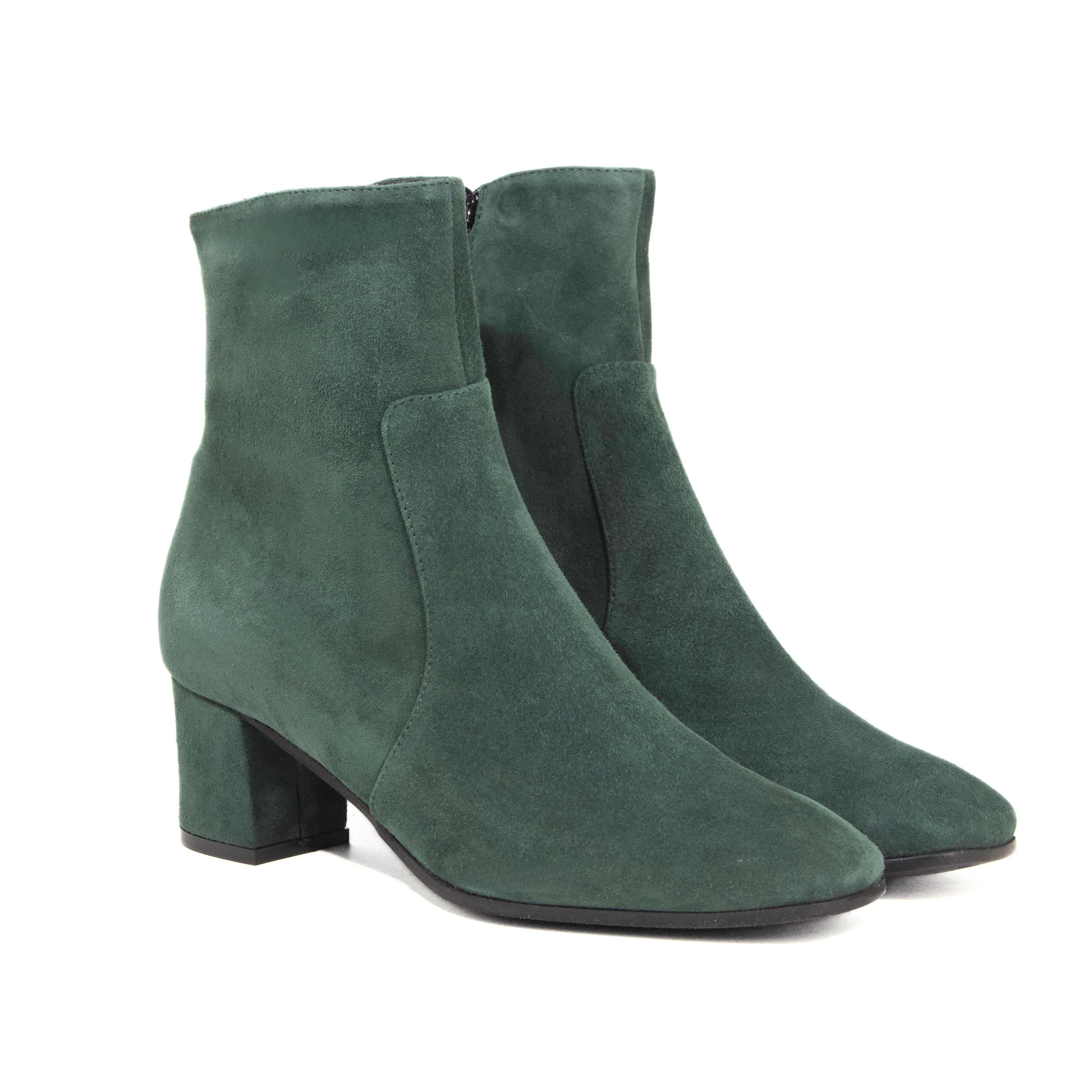 TRONCHETTO IN CAMOSCIO VERDE CON TACCO A BLOCCO E PUNTA ARROTONDATA