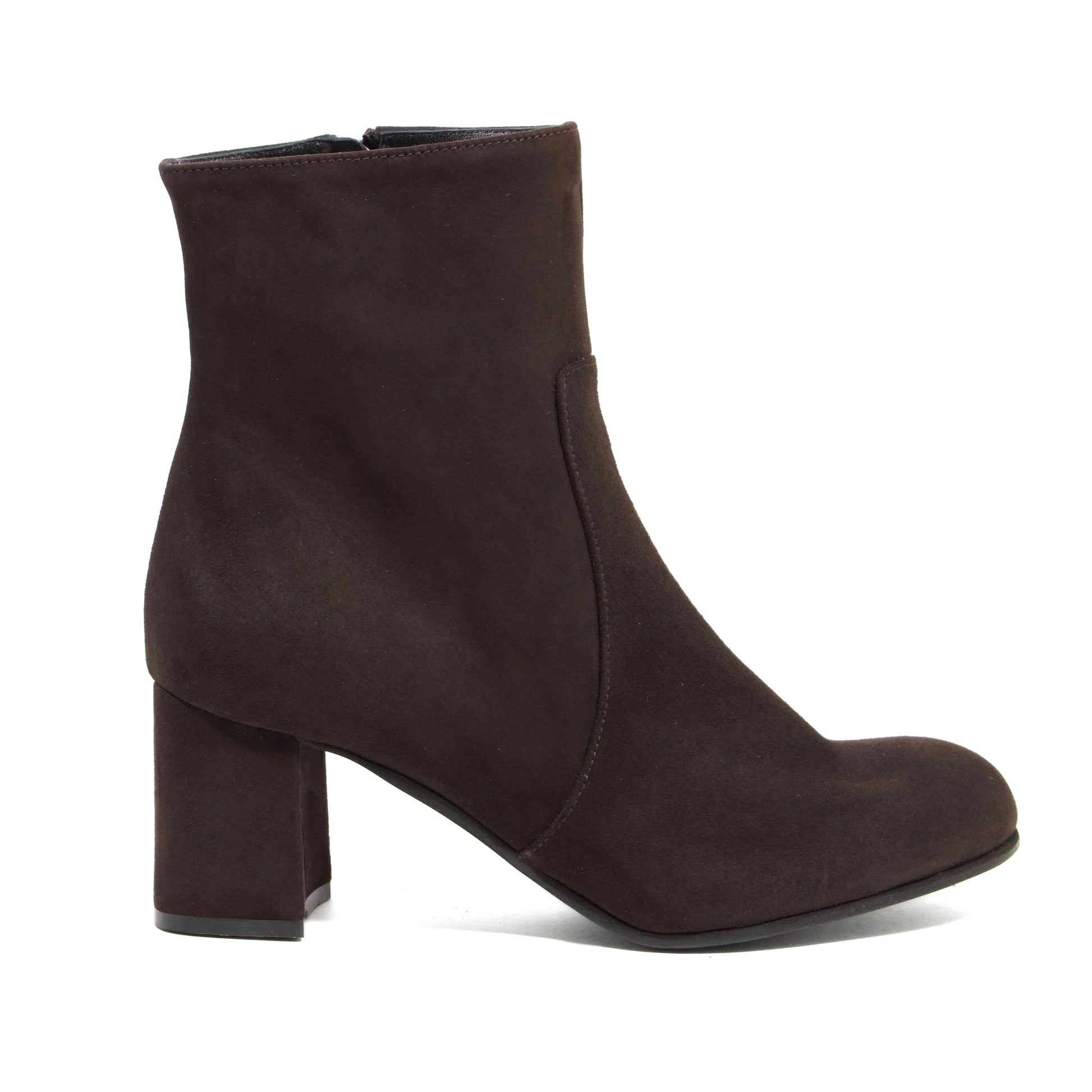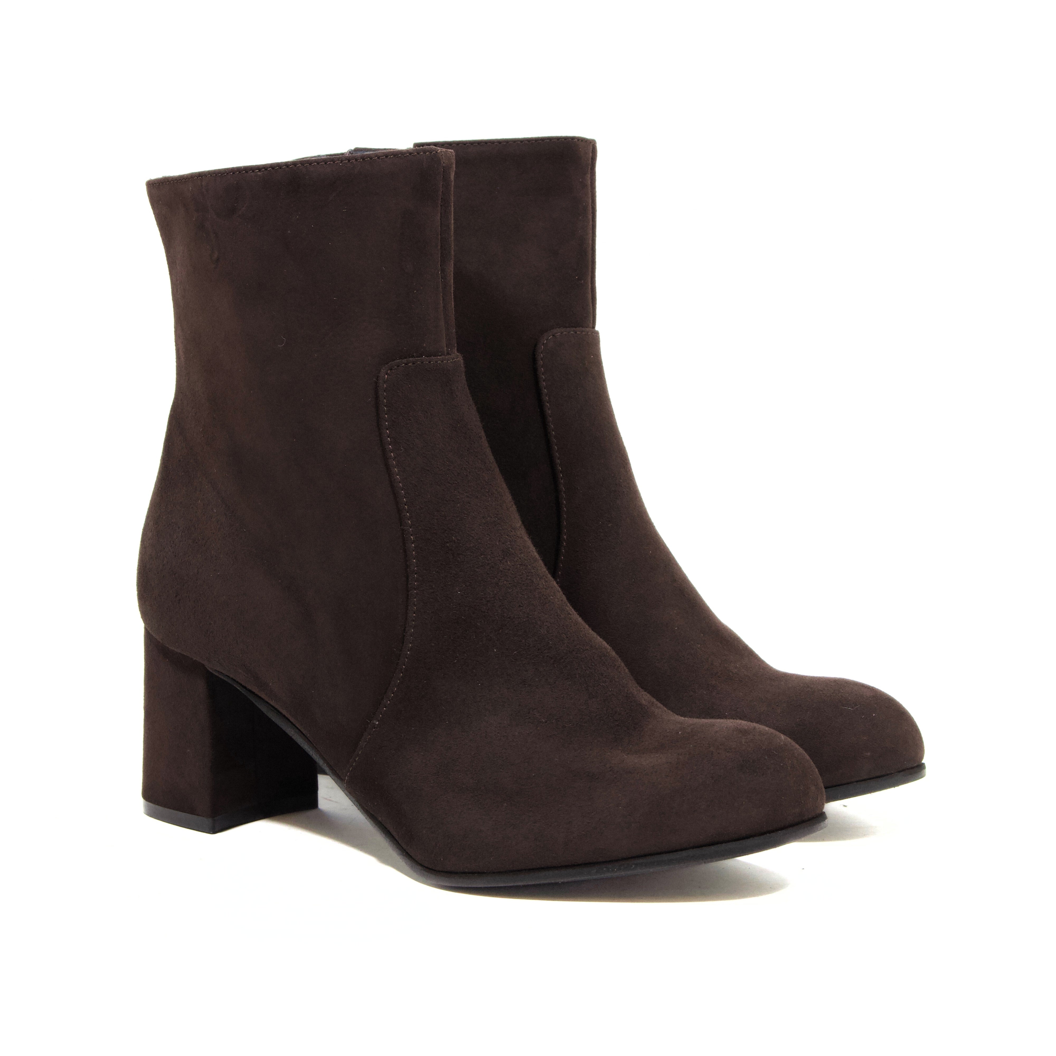 TRONCHETTO IN CAMOSCIO TESTA DI MORO CON TACCO A BLOCCO E PUNTA ARROTONDATA