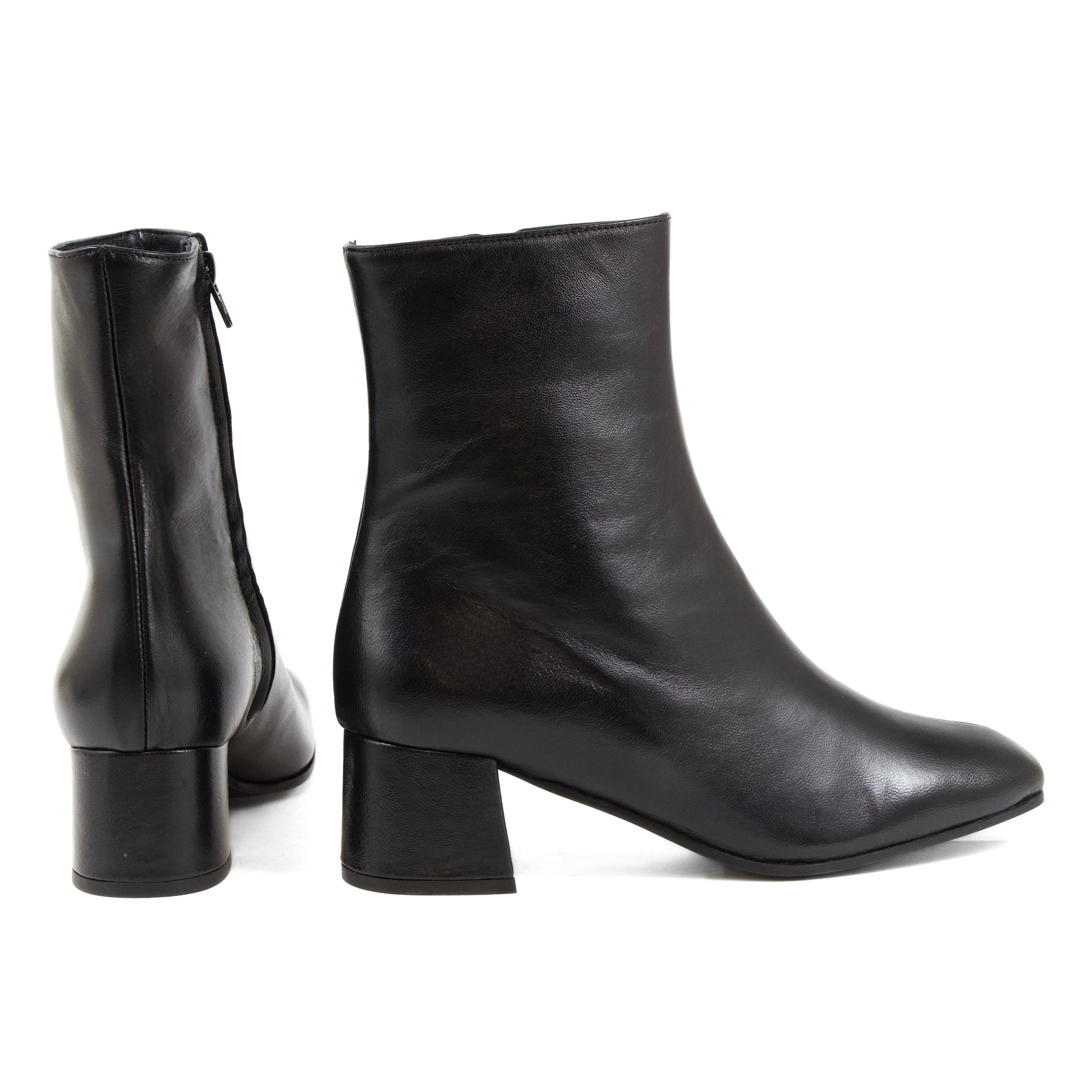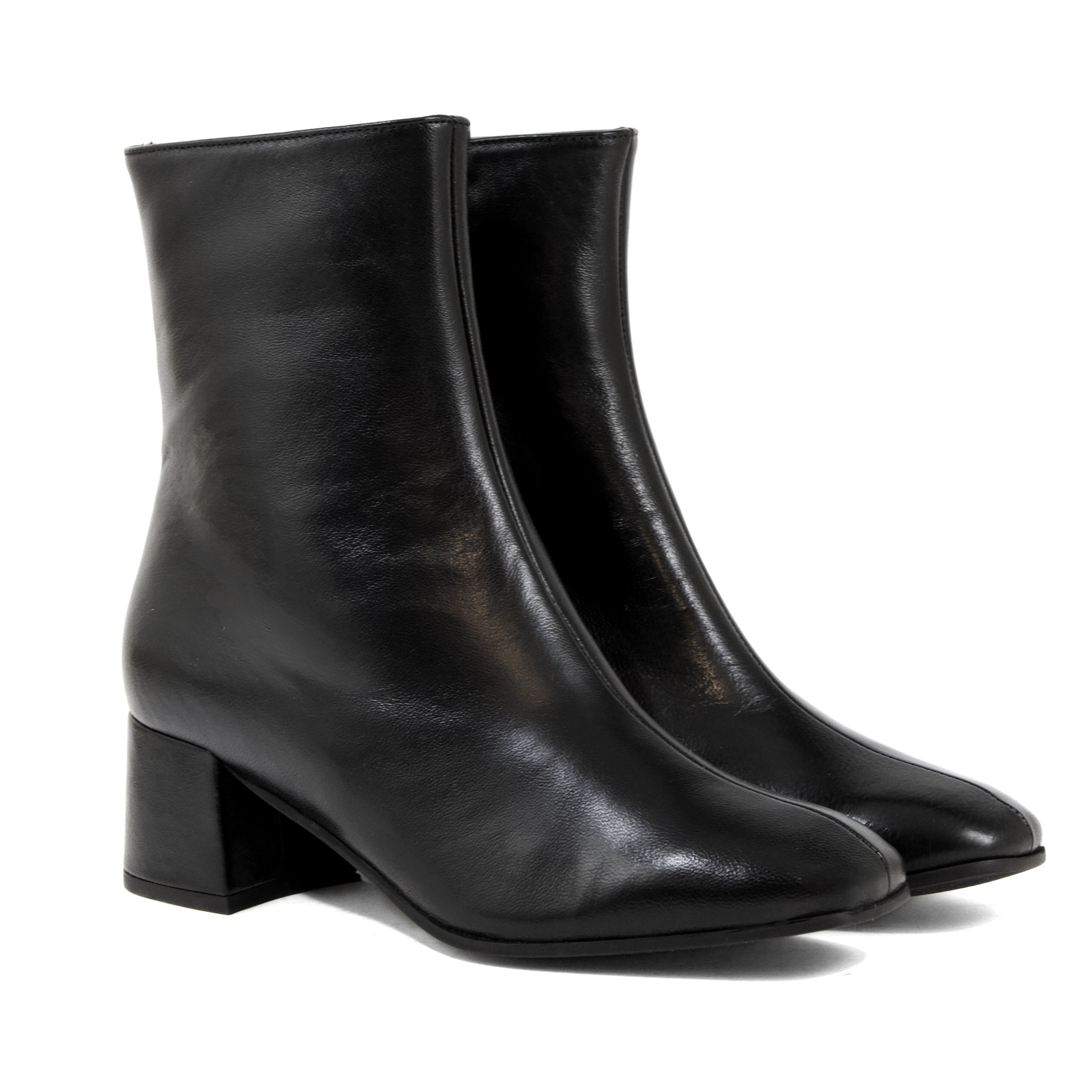 TRONCHETTO IN NAPPA NERA CON TACCO LARGO E ZIP LATERALE